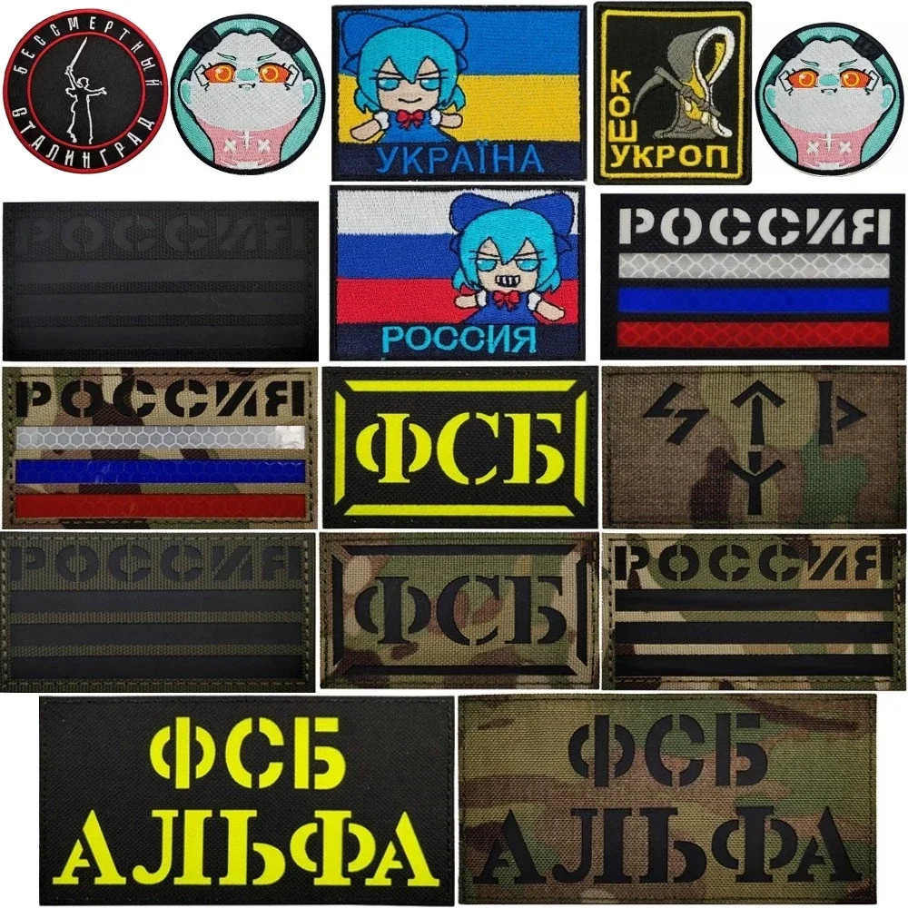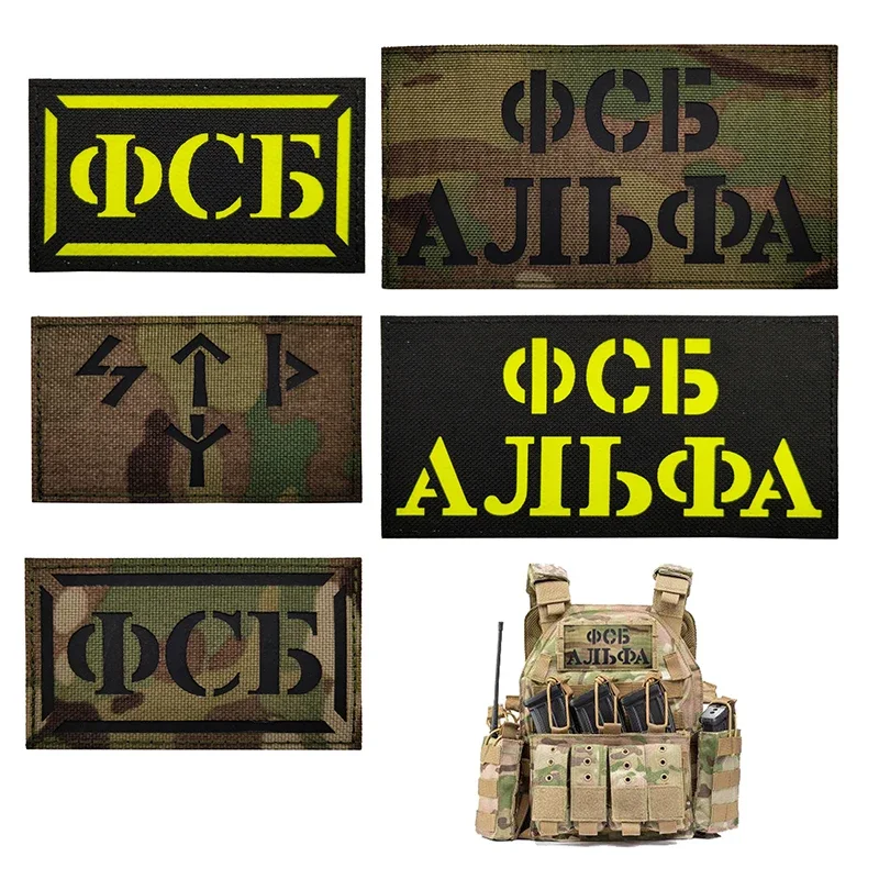 Parches reflectantes de runas nórdicas KGB, insignia militar, parche táctico de bandera rusa Chevron en tela, mochila, brazalete de moral con gancho y bucle