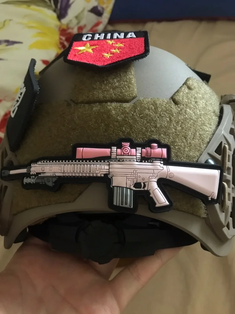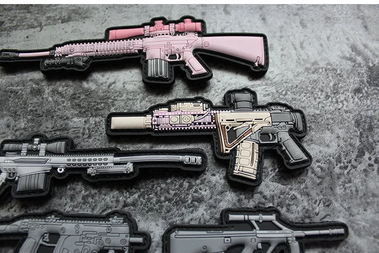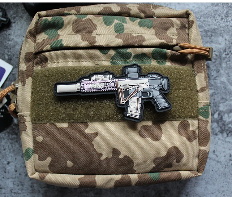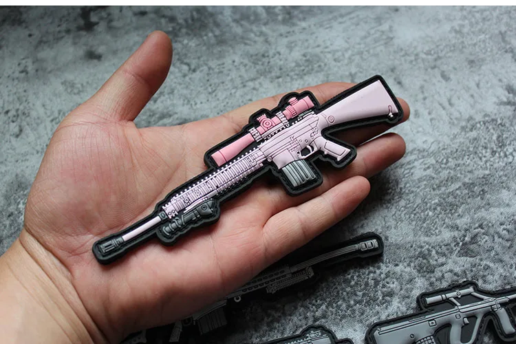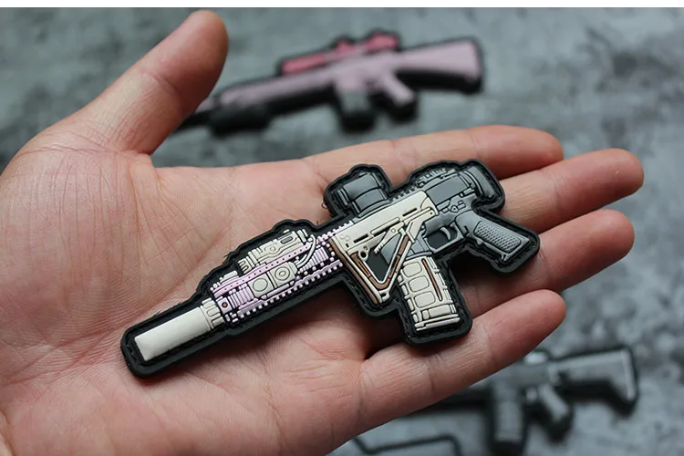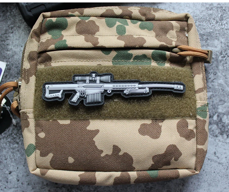 Parches para Rifle armado de PVC 3D, pistola de asalto de francotirador, brazalete de carbono, insignia táctica de habilidad Barrett para bolsa de ropa, versión Q SR25 M416