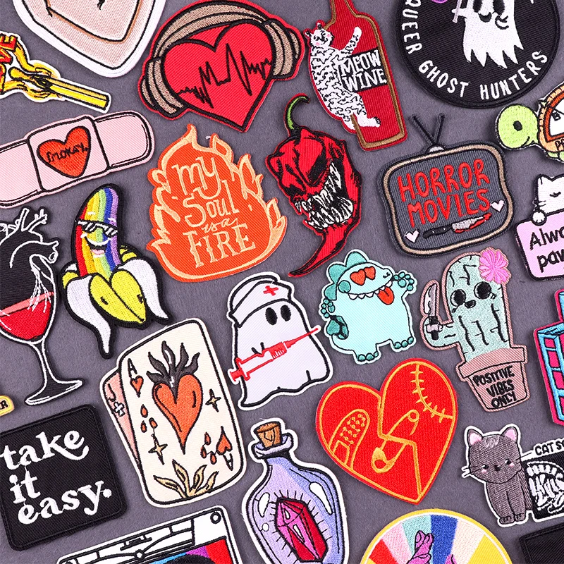 Parches de ropa con bordado de corazón para ropa, botella de Animal, parches termoadhesivos en la ropa, pegatinas de dinosaurio fantasma lindo