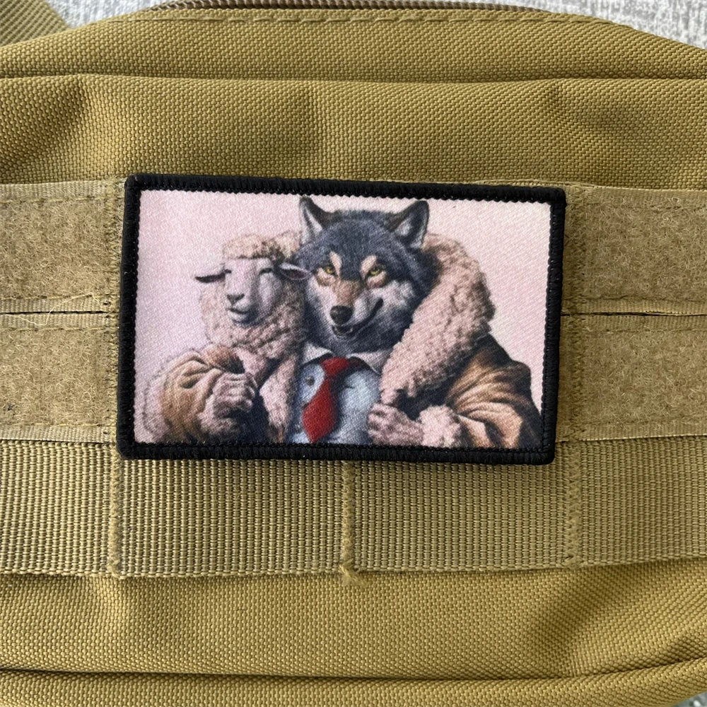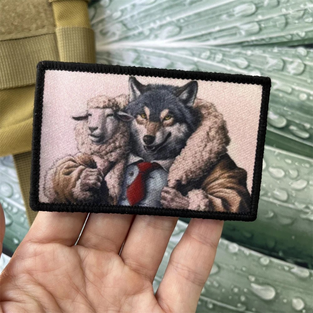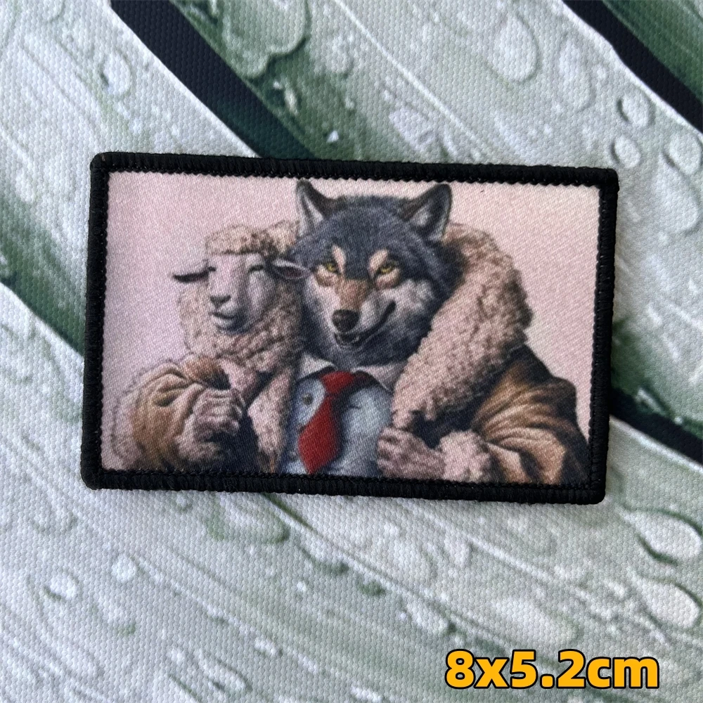 Parches de ropa de lobo en oveja, insignia de moral táctica, impresa de gancho y bucle pegatina, brazalete militar