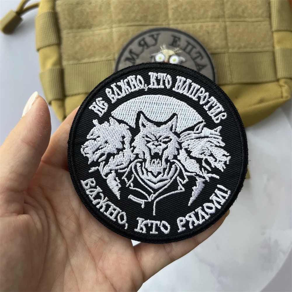 Parches rusos táctico Lobo hacha bordado gancho y bucle moral insignia Chevron mochila pegatina