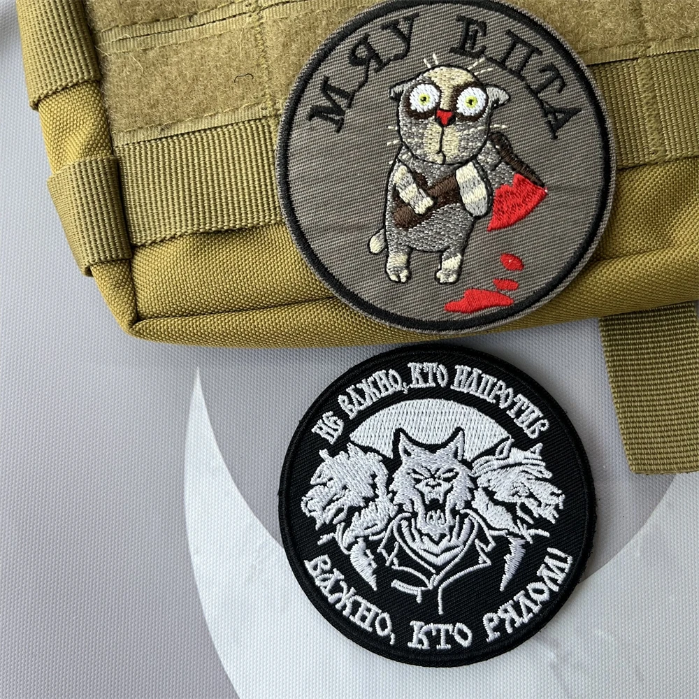Parches rusos táctico Lobo hacha bordado gancho y bucle moral insignia Chevron mochila pegatina