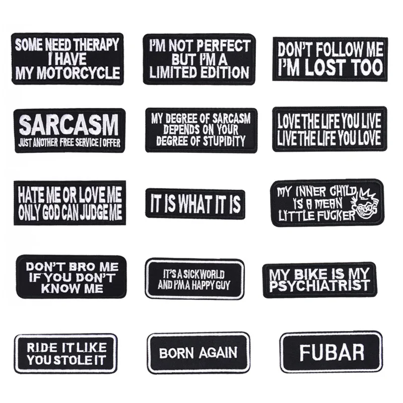 Parches de sarcasmo IT IS WHAT LOVE LIFE YOU LIVE THERAPY para motocicleta MC RIDE BIKE, chaqueta, chaleco, divertido, motero, insignia de emblema