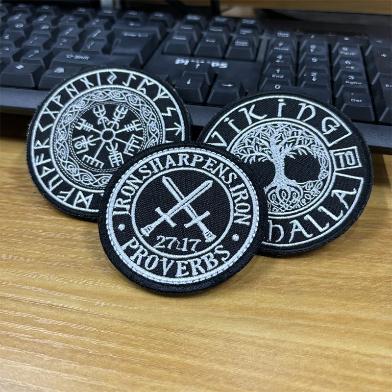 Parches tácticos de árbol de la vida, parche de gancho y bucle, insignia de moral vikinga militar 27:17, pegatina para brazalete de mochila afilada de hierro
