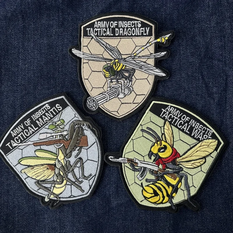 Parches tácticos de bordado de insectos, insignia de moral al aire libre, Mantis de abeja, Libélula, apliques de mochila de ropa DIY