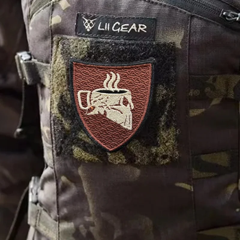 Parches de gancho y bucle bordados con calavera de café, insignia de moral Espresso MK2 americana, pegatina de decoración de mochila táctica