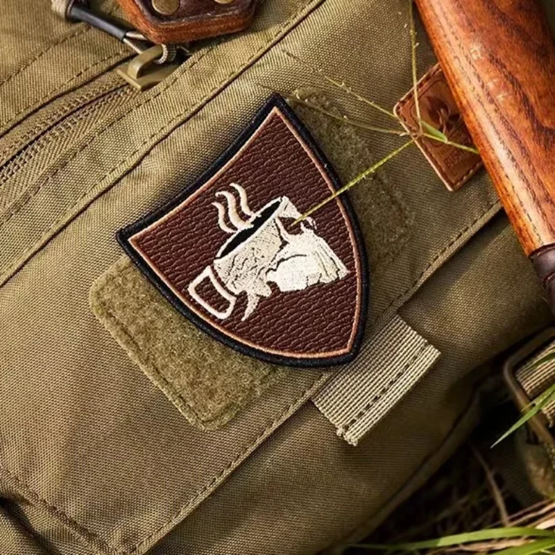 Parches de gancho y bucle bordados con calavera de café, insignia de moral Espresso MK2 americana, pegatina de decoración de mochila táctica