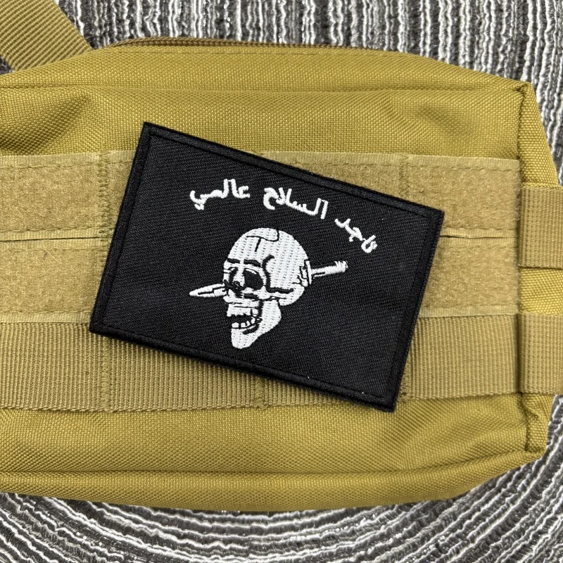 Parches tácticos bordados de espada de Calavera, Parche de gancho y bucle, las armas son la corona de todo, insignia de moral de calavera en la mochila
