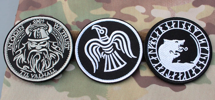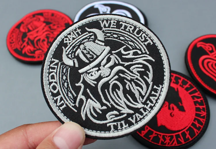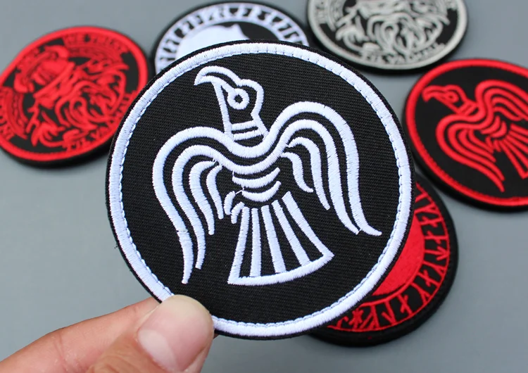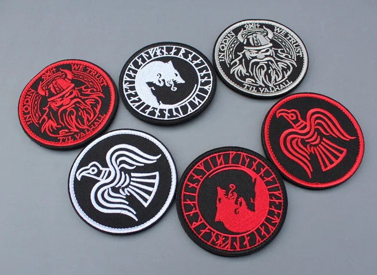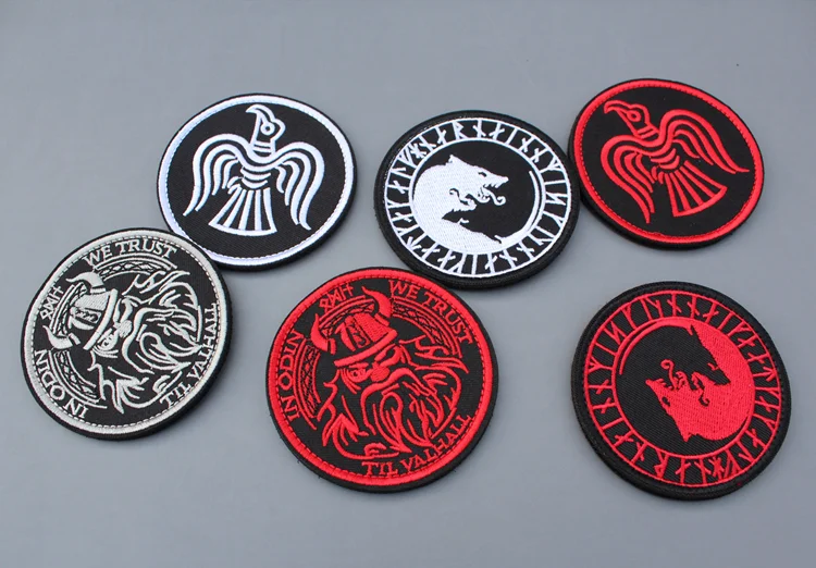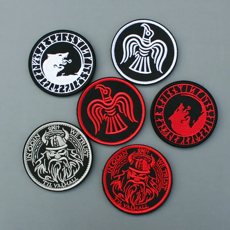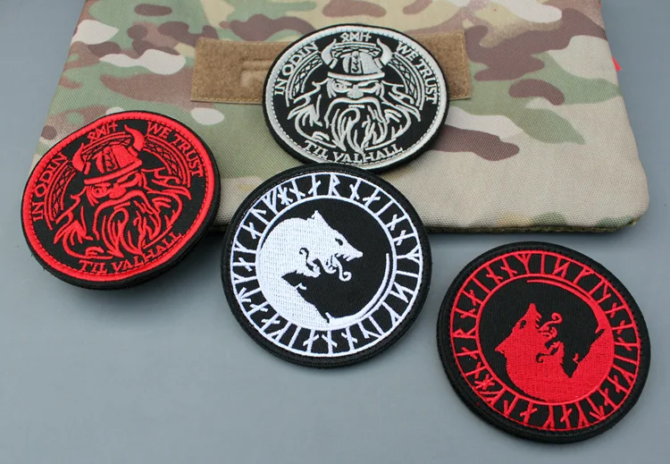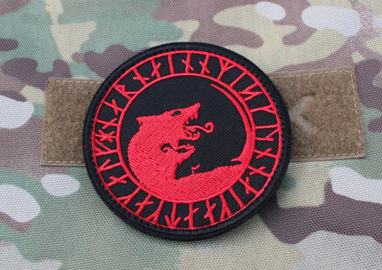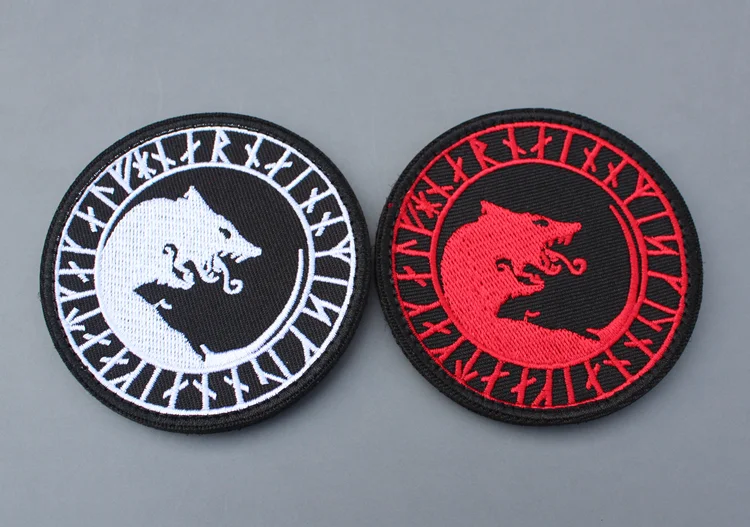 Parches tácticos bordados de lobo vikingo nórdico, insignias bordadas, pegatinas Rojas blancas para ropa, mochila, decoración de mezclilla