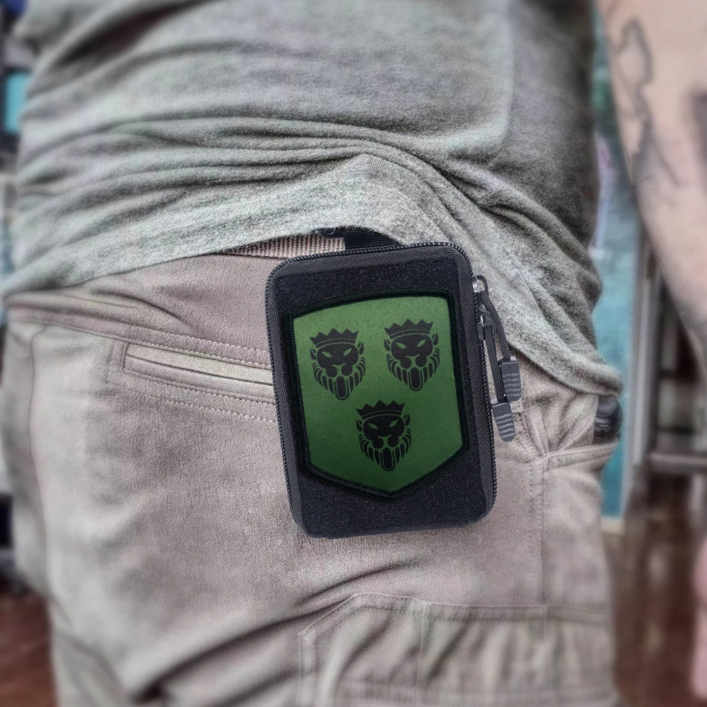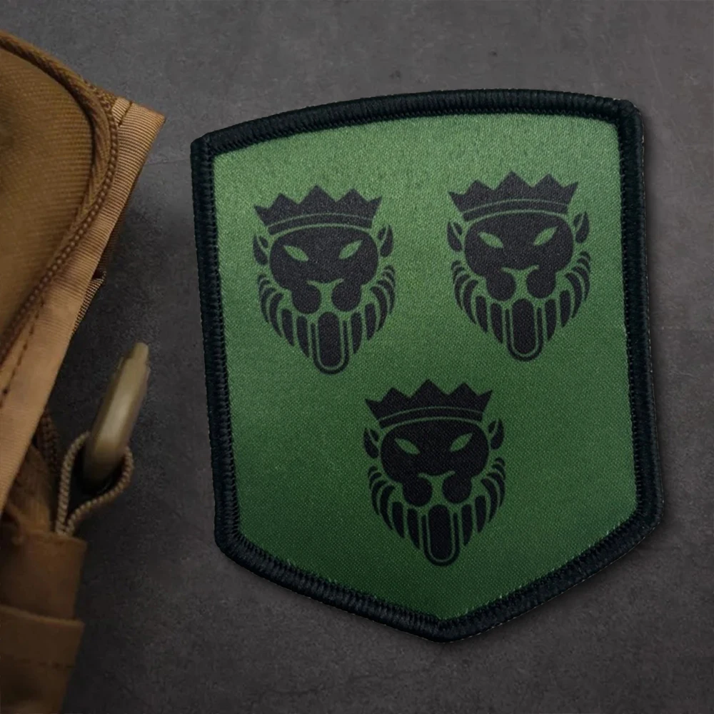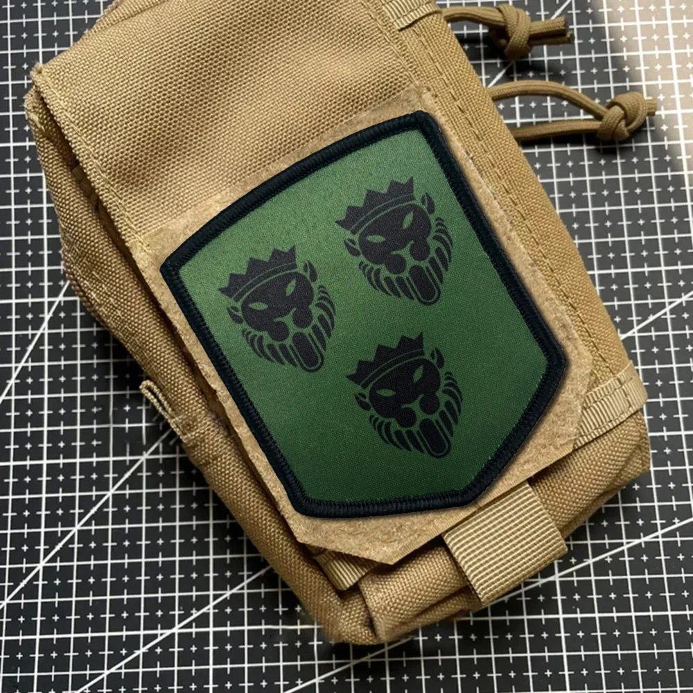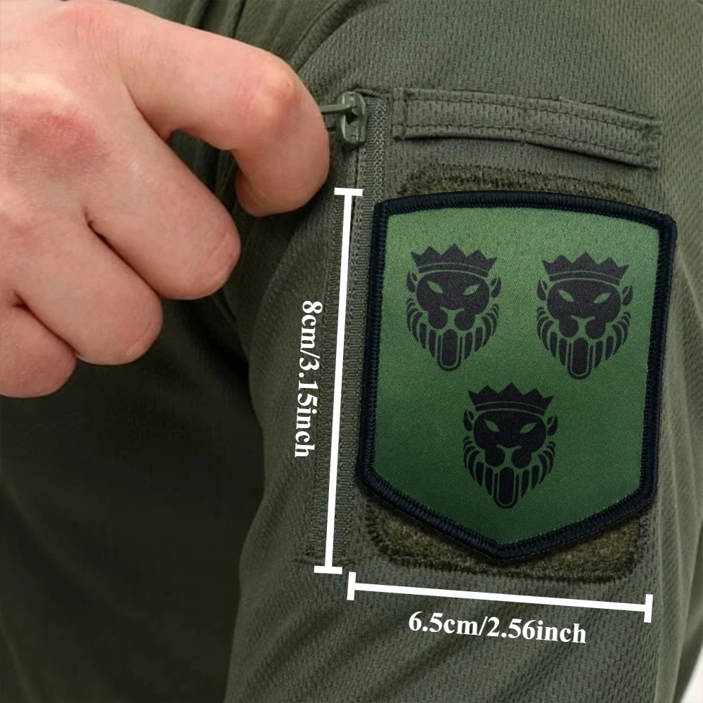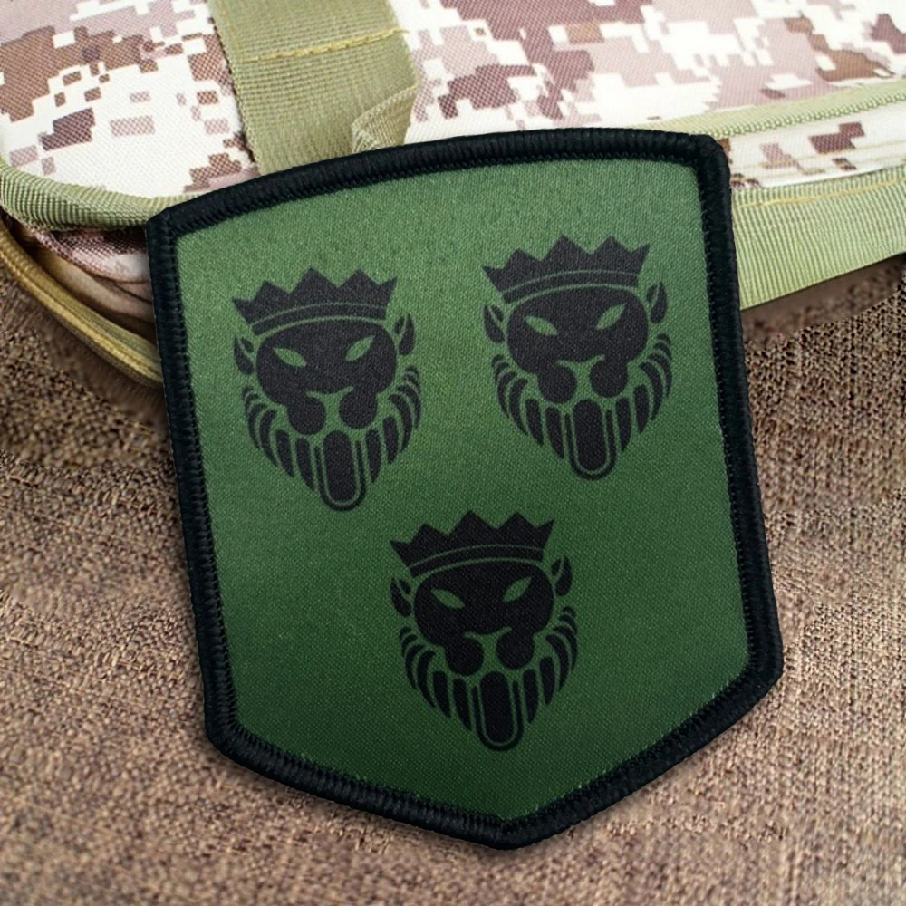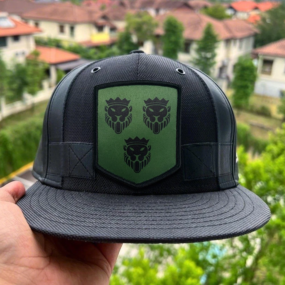 Parches tácticos con cabeza de león y corona, parche de bandera Meme con gancho y bucle, insignia de moral del ejército militar, pegatinas para mochila