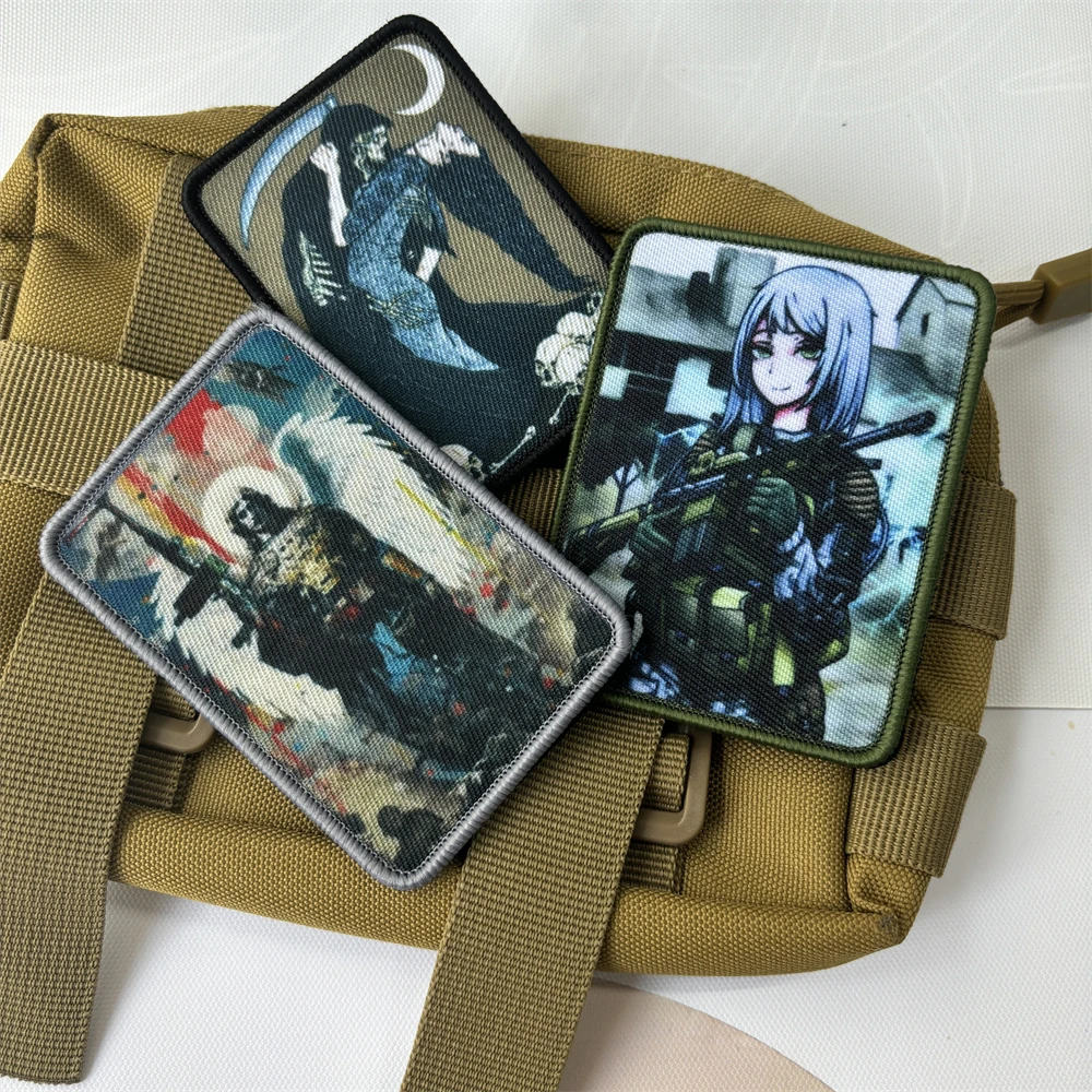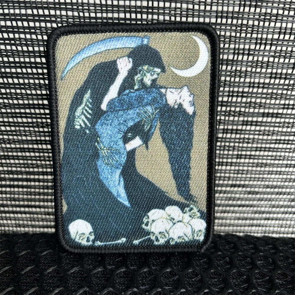 Parches tácticos de calavera "Danza con la muerte" Guardián "Ángel Meme Imprimir Gancho Emblema Militar" Terrorífico "Insignia Mochila PegatinasNotas: