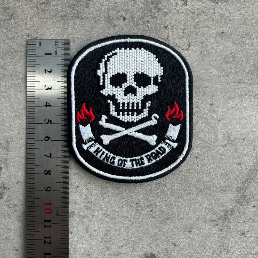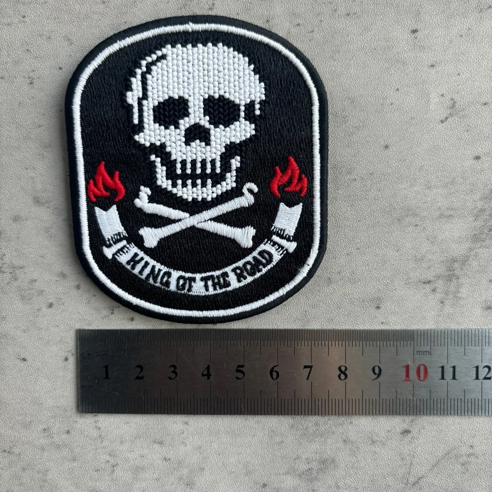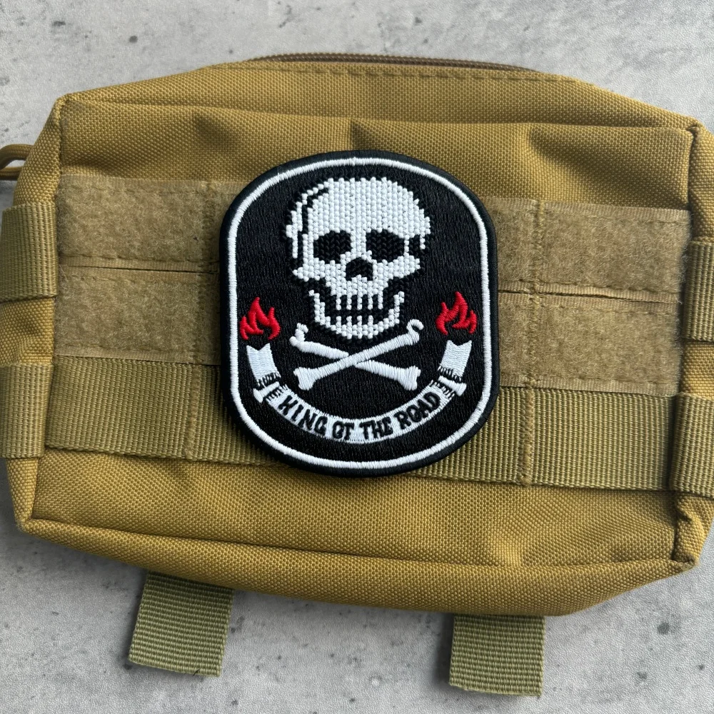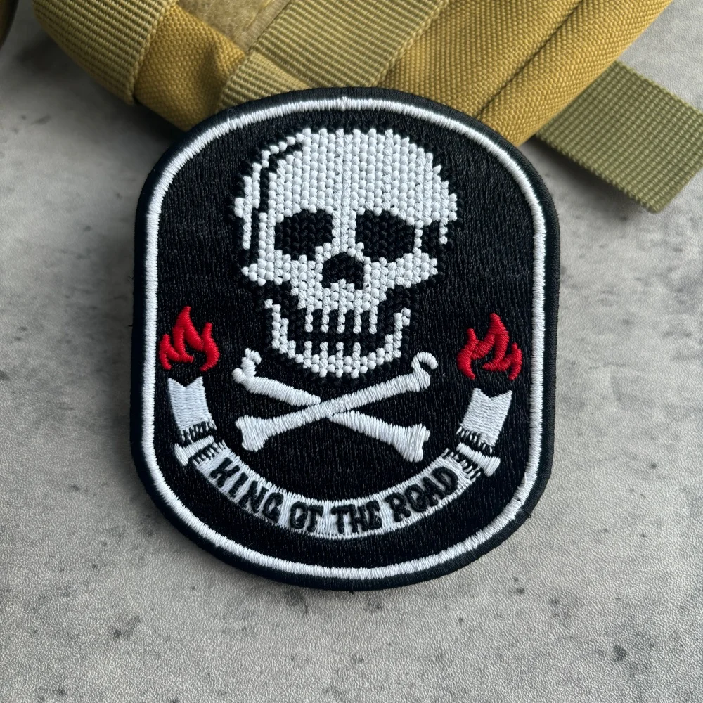 Parches tácticos de calavera Hing of The Road, parche bordado con gancho y bucle, insignia de moral del ejército militar, pegatinas para mochila