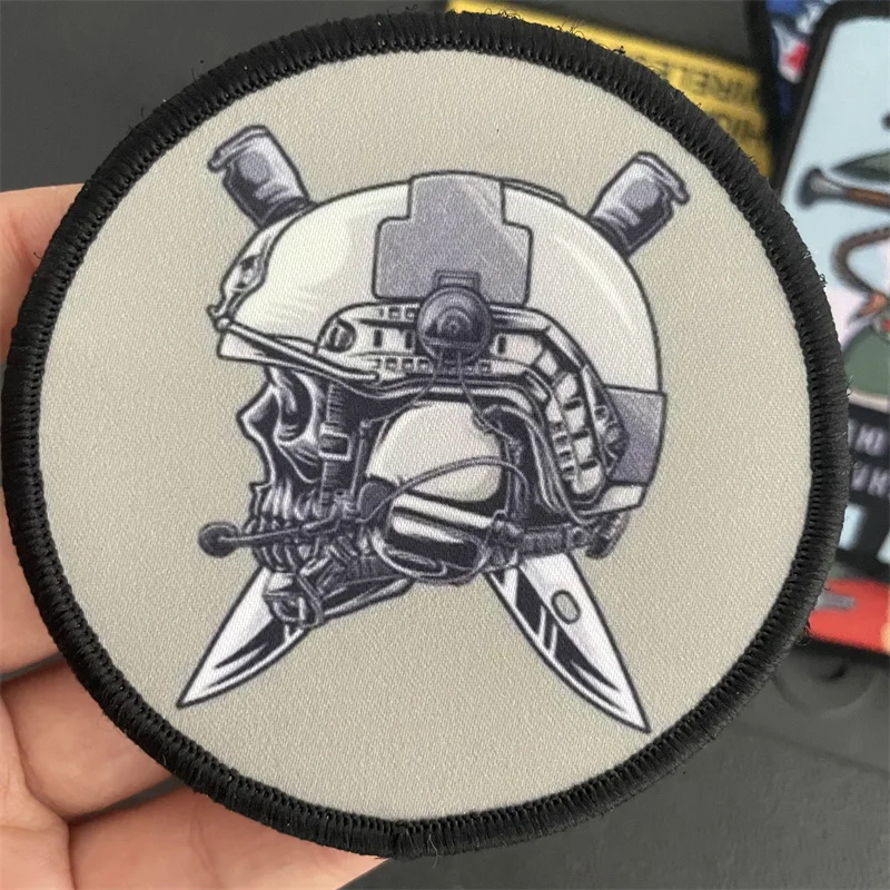Parches tácticos de Calavera, emblema bordado de Mystery Ranch, Parche de gancho y bucle, insignia de moral de cabeza de Calavera, apliques de mochila para exteriores DIYTamaño: como muestra la imagen