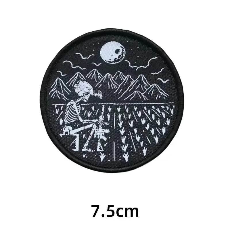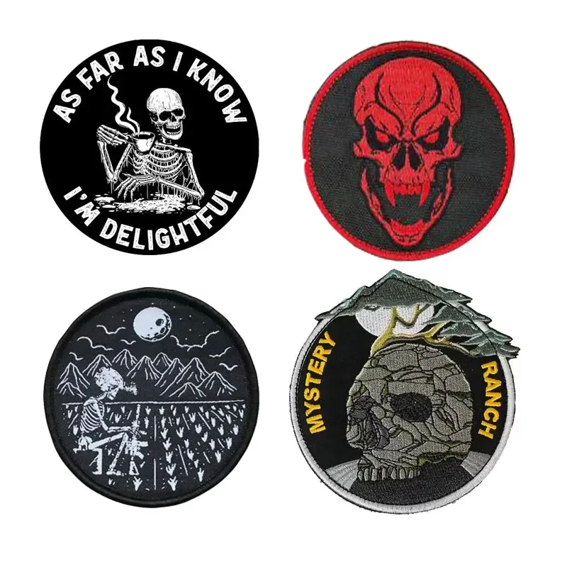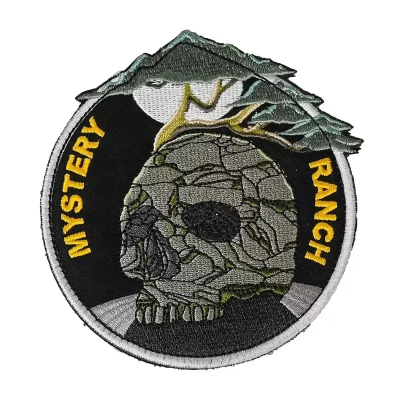 Parches tácticos de calavera Ranch misterioso, parche bordado de gancho y bucle, insignia de moral con cabeza de calavera para exteriores, pegatinas para mochila DIYTamaño: como muestra la imagen
