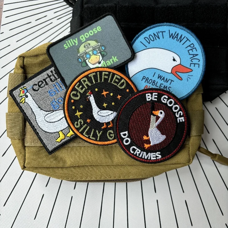 Parches tácticos certificados Silly Goose Morale parche de gancho y bucle bordado divertido Be Goose Do Crimes insignia brazalete mochila pegatinas