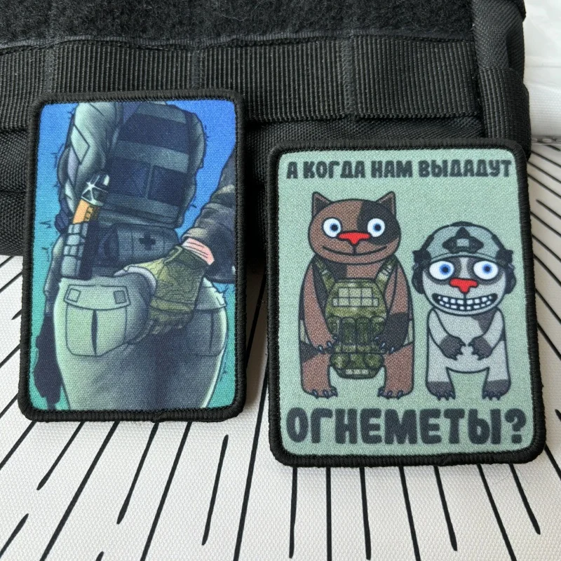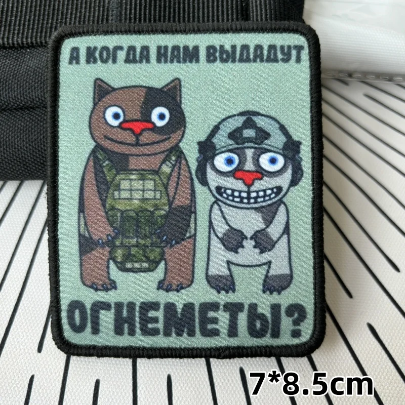 Parches tácticos de dibujos animados de animales, soldados, moral, parche impreso de gancho y bucle de Rusia, insignia de levantamiento militar, brazalete, pegatinas de mochila