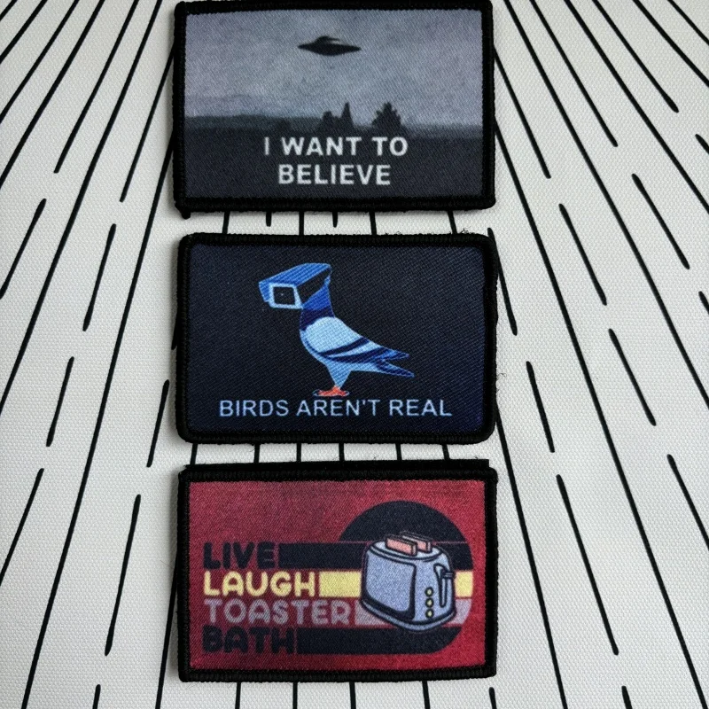 Parches tácticos impresos divertidos, los pájaros no son reales, Parche de gancho y bucle, insignia de tostadora militar, brazalete moral, mochila, pegatinas para ropaNOTA: