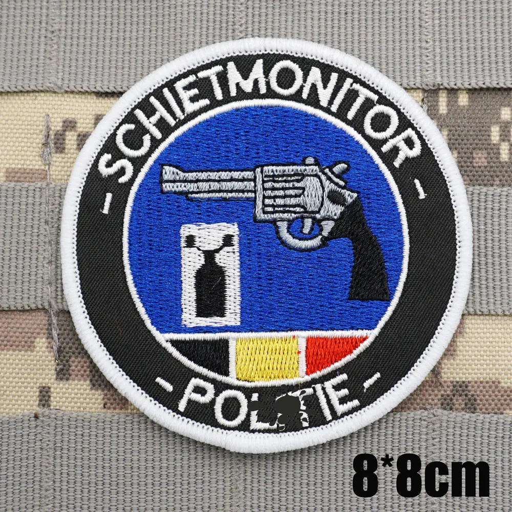 Parches tácticos de gancho y bucle para ropa, mochilas para ropa, accesorios de Exteriores militares, Bélgica, SCHIETMONITOR