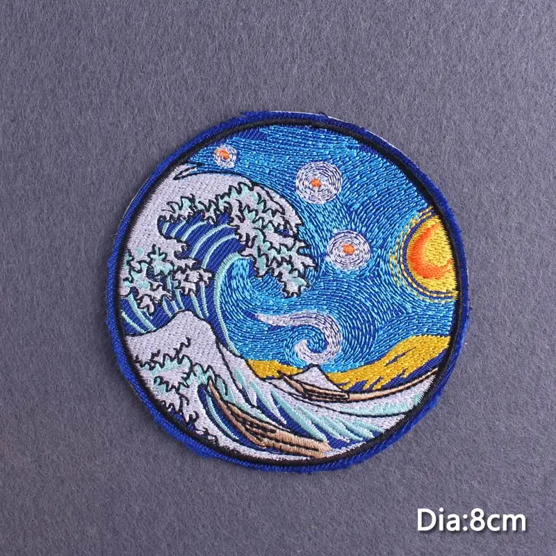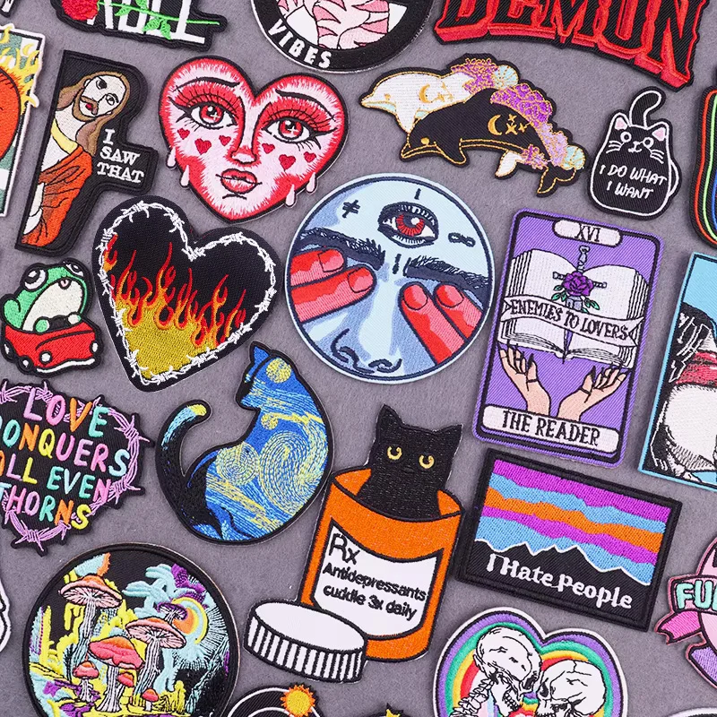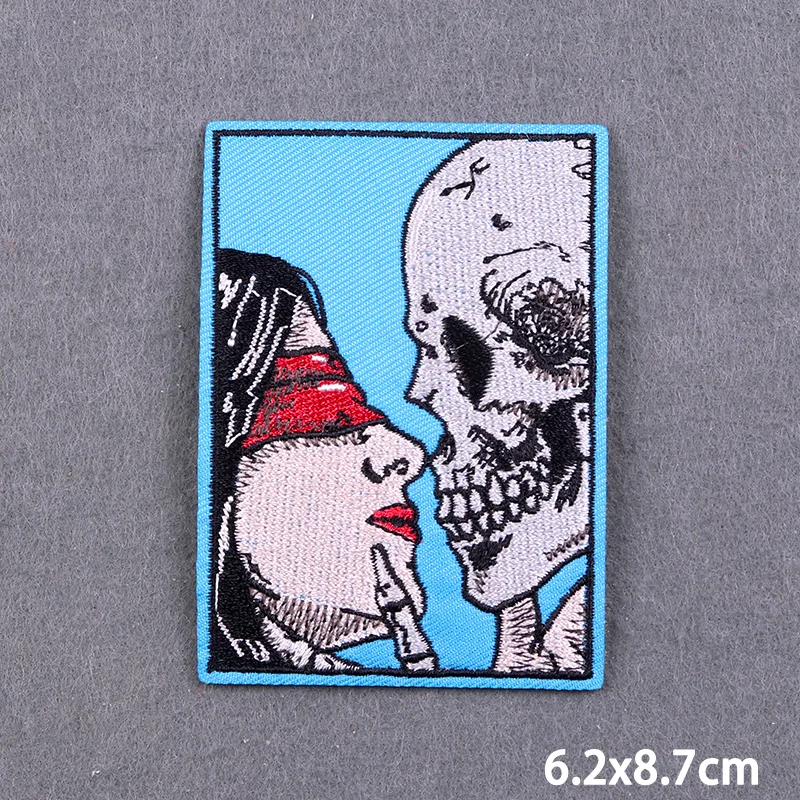 Parches tácticos con ilustraciones abstractas para pantalones vaqueros, parches bordados para lector de ropa, parche para planchar, aplique con emblema con logotipo de Rock