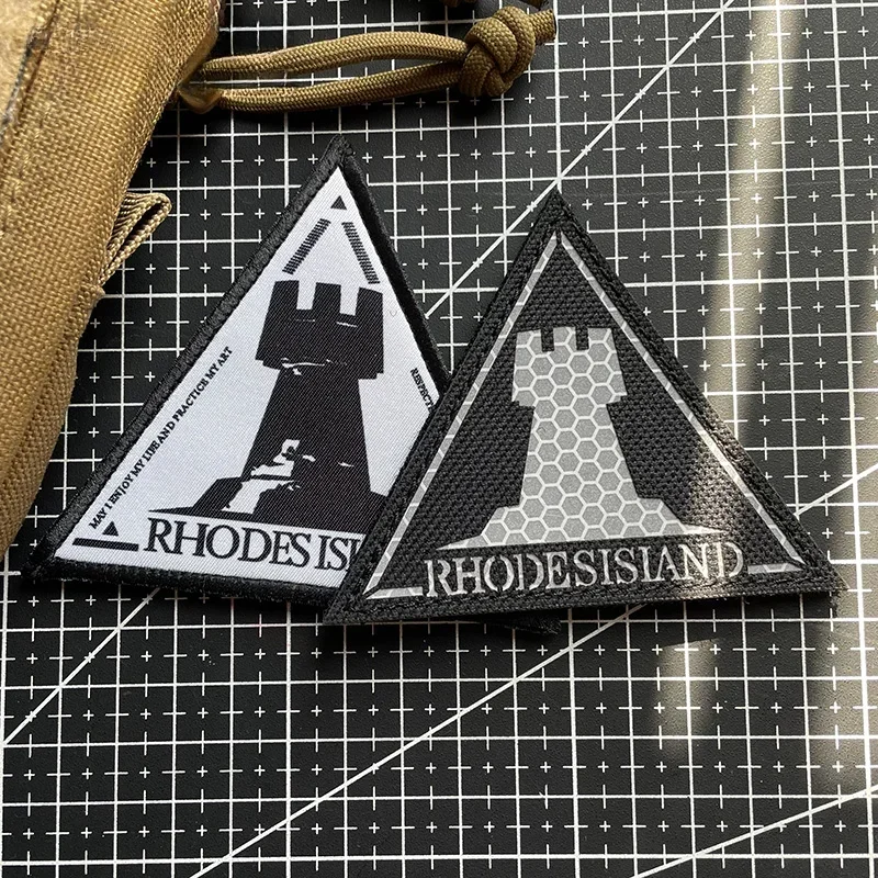 Parches tácticos de la Isla de Rhodes para accesorios de uniformes, parche reflectante IR de gancho y bucle, emblema de Anime binario de Arknights en mochila