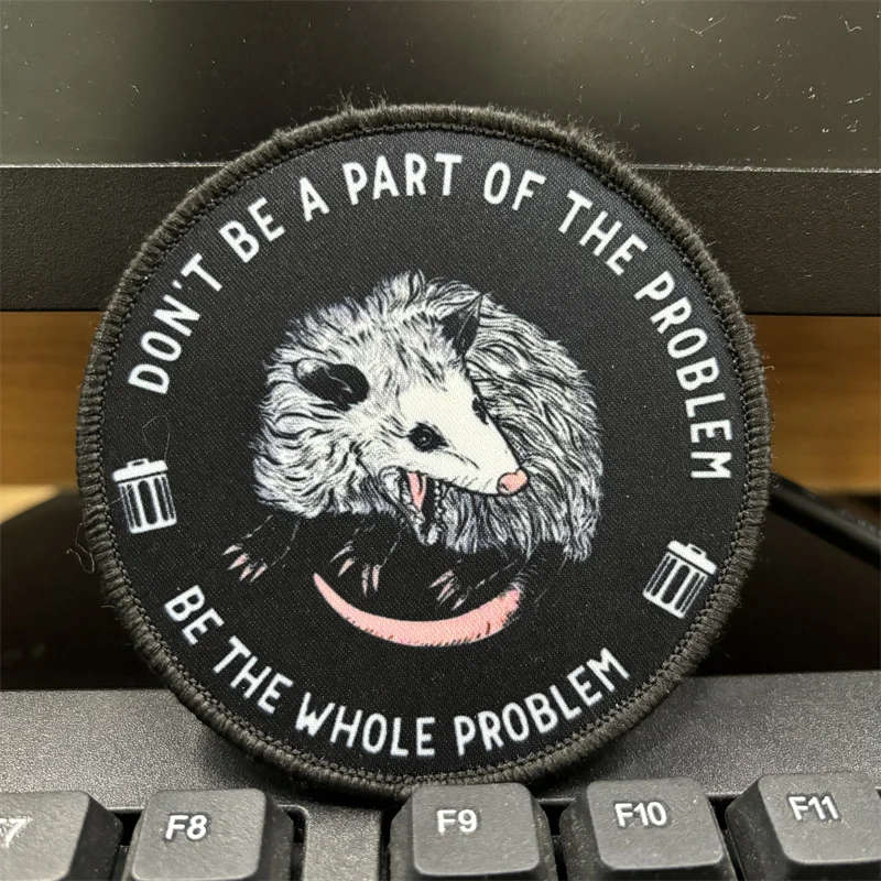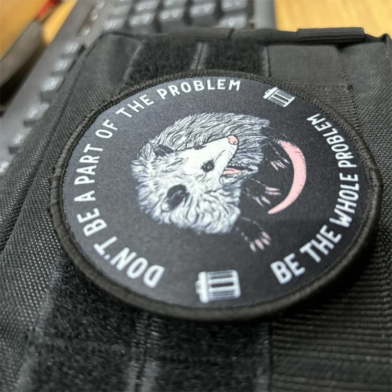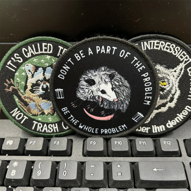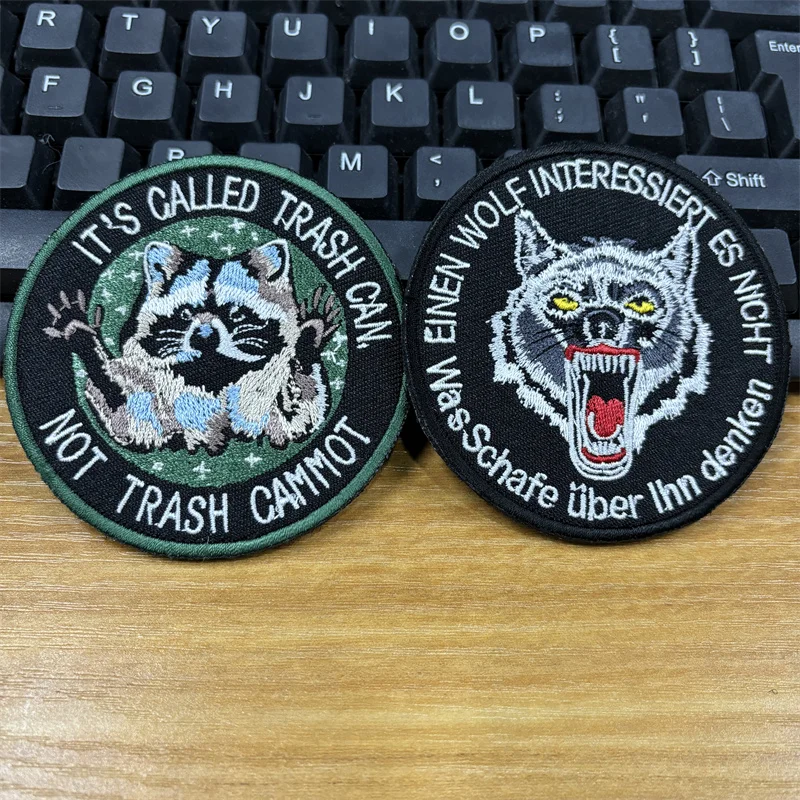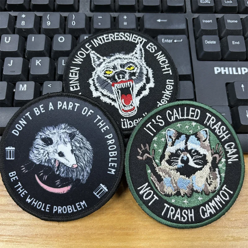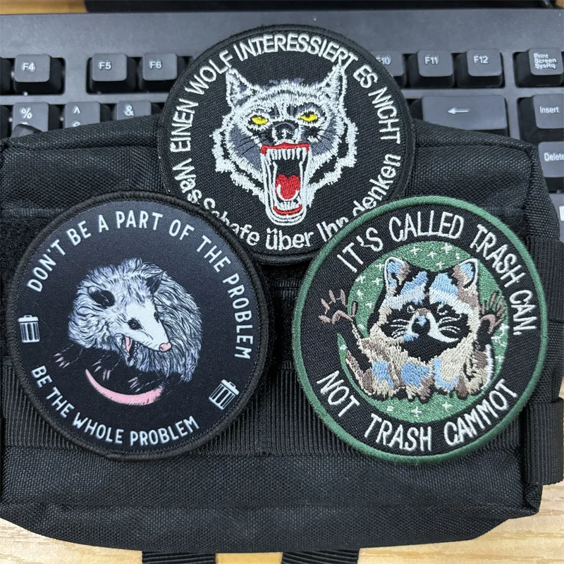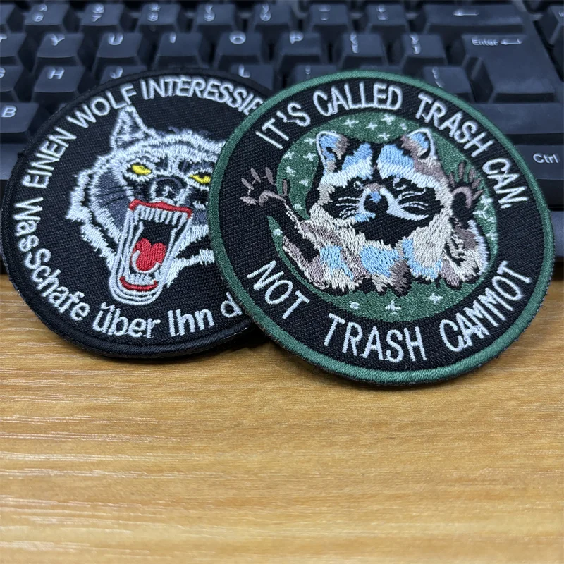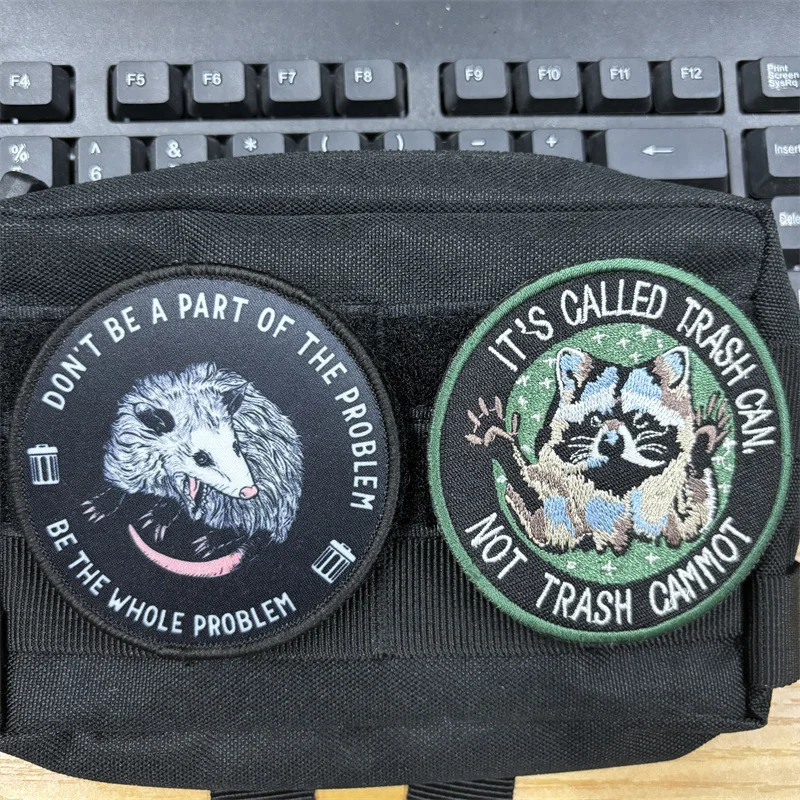 Parches tácticos de gancho y bucle de lobo llamado bote de basura, no basura Cammot bordado moral insignia lindos emblemas de ratón en la mochila de ropa