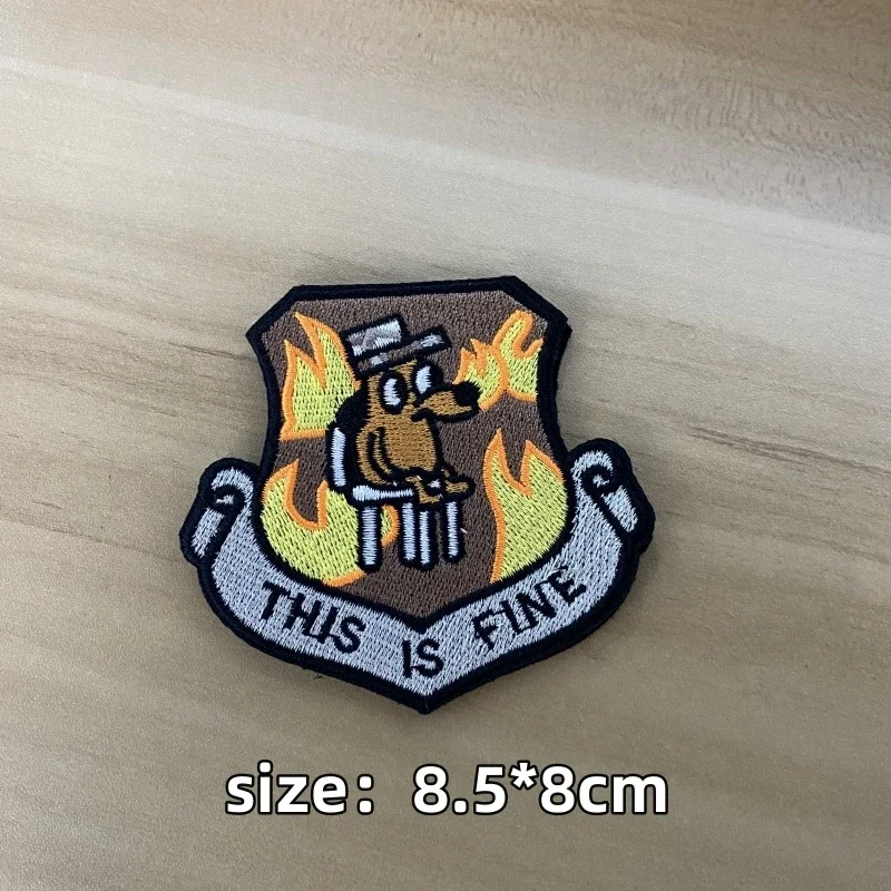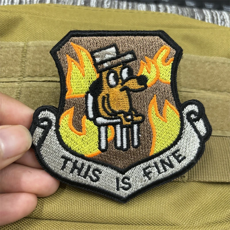 Parches tácticos para perros This Is Fine, parche de gancho y bucle, pegatina de correa de perro con moral de personalidad, apliques de mochila DIY