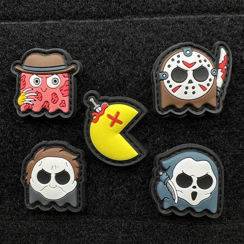 Parches tácticos luminosos de la serie Eating Bean, 5 piezas de PVC, Mini parche de gancho y bucle, brazalete nostálgico, insignia de moral, pegatinas para mochila