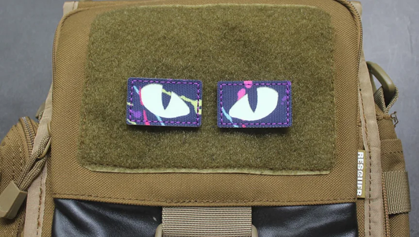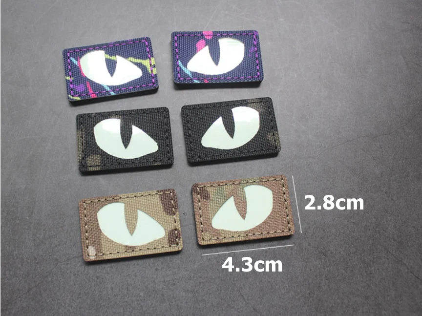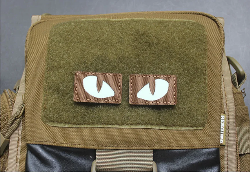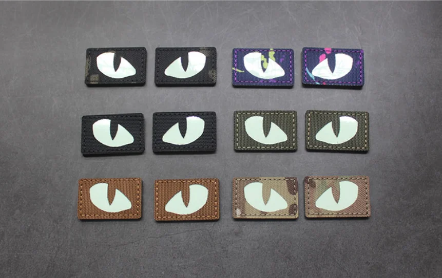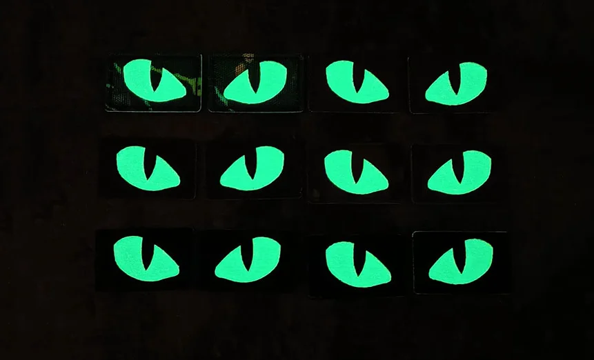 Parches tácticos luminosos de ojos de gato que brillan en la oscuridad, apliques de combate para exteriores, insignias para ropa, decoración de mochila de casco, 1 par