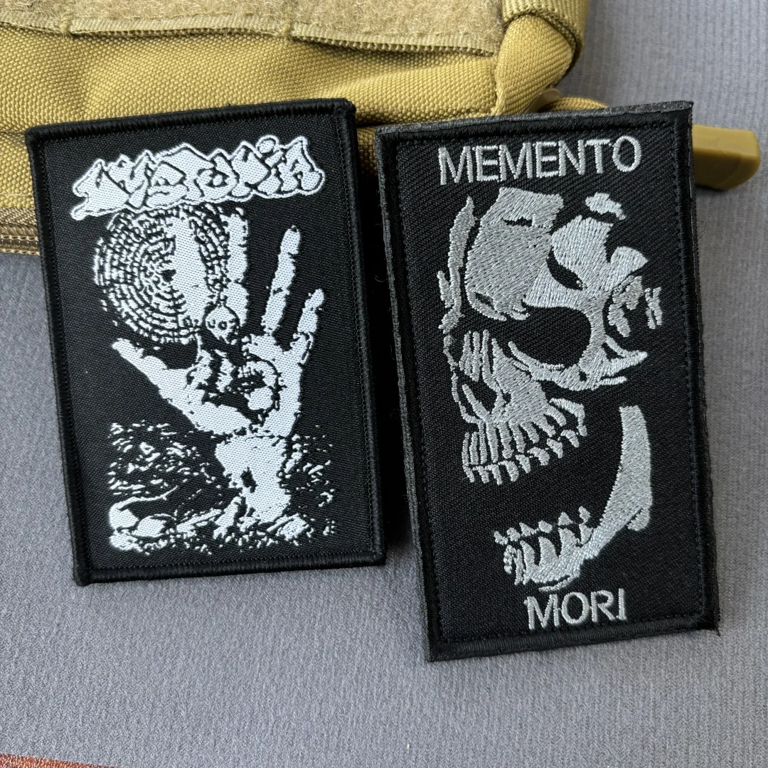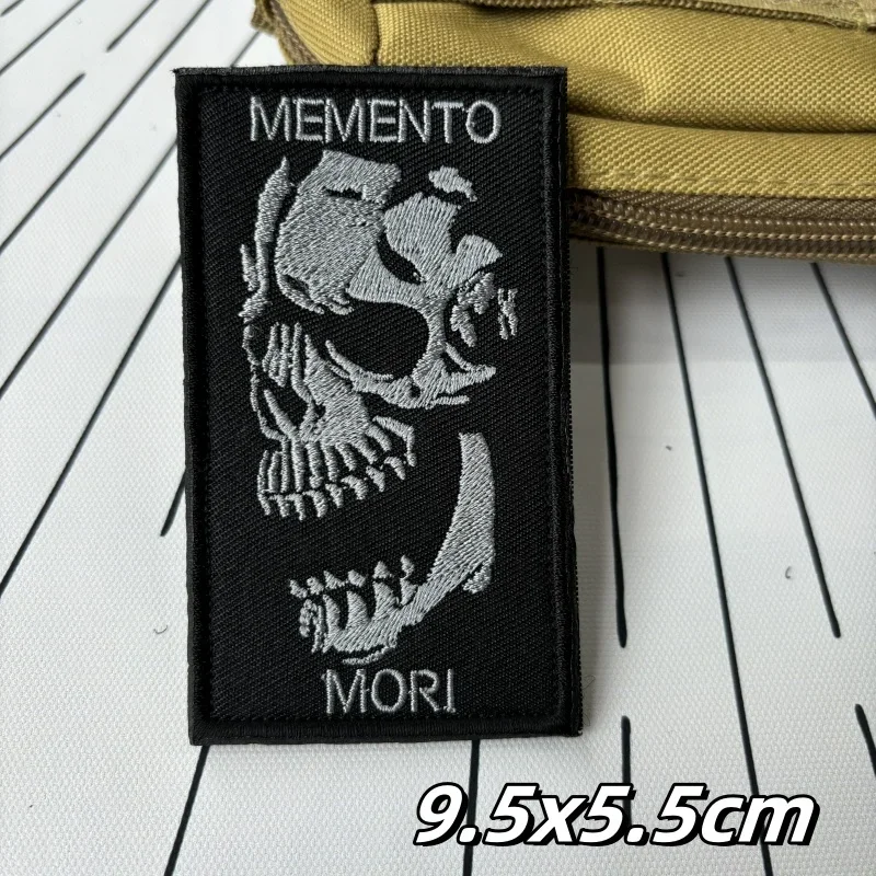 Parches tácticos de "Memento Mori", Calaveras, moral, dystopía, bordado de gancho y bucle, insignia militar de Chevron, brazalete, pegatina para mochila