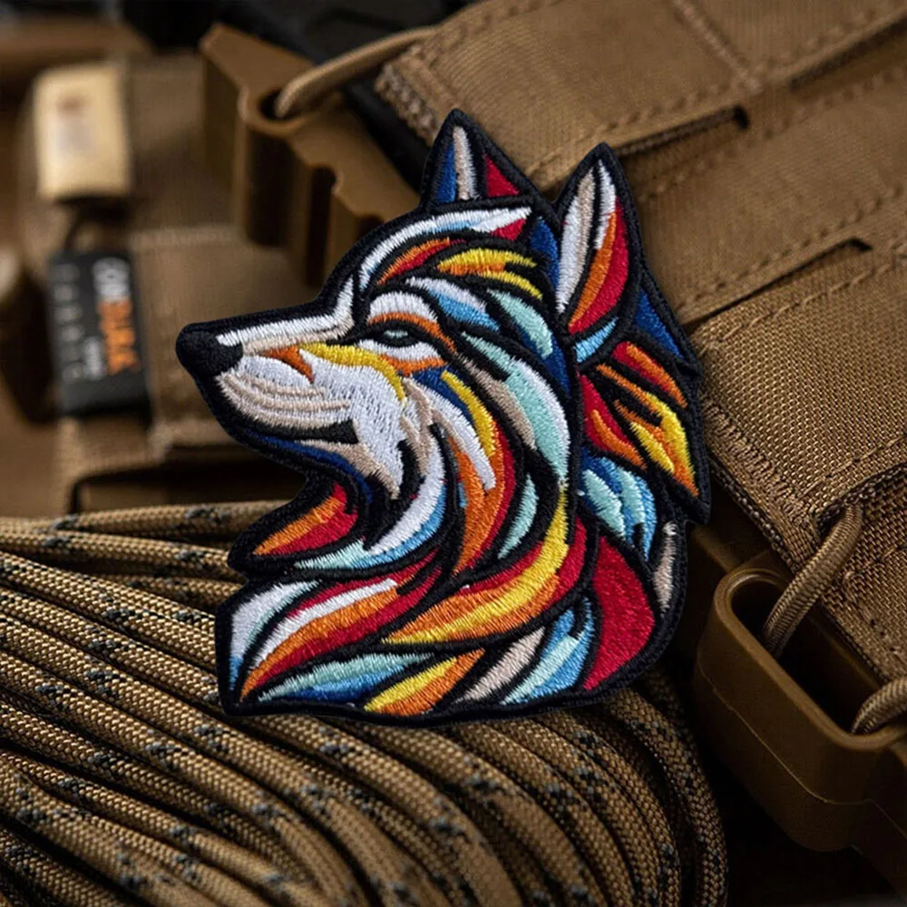 "Cabeza de lobo arcoíris", parches tácticos de moral, parche bordado con gancho y bucle, insignia militar, brazalete, pegatinas para mochila1.Debido a las diferentes resoluciones de los dispositivos electrónicos, el color puede ser ligeramente diferente al color real.