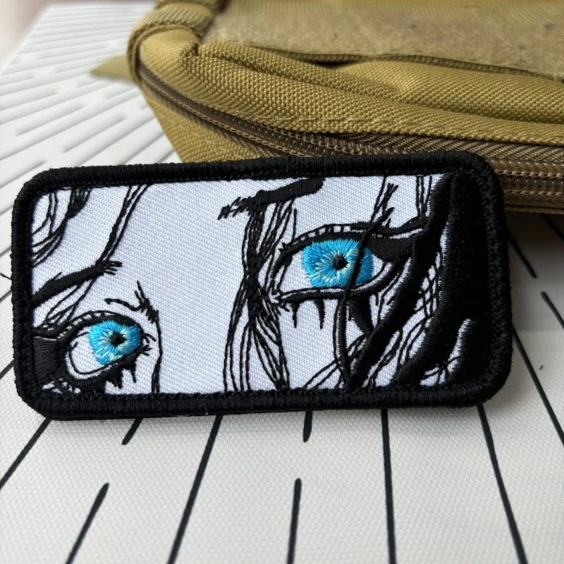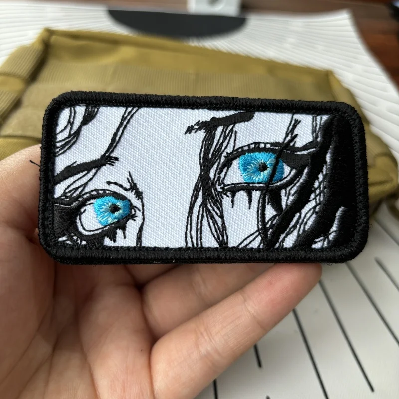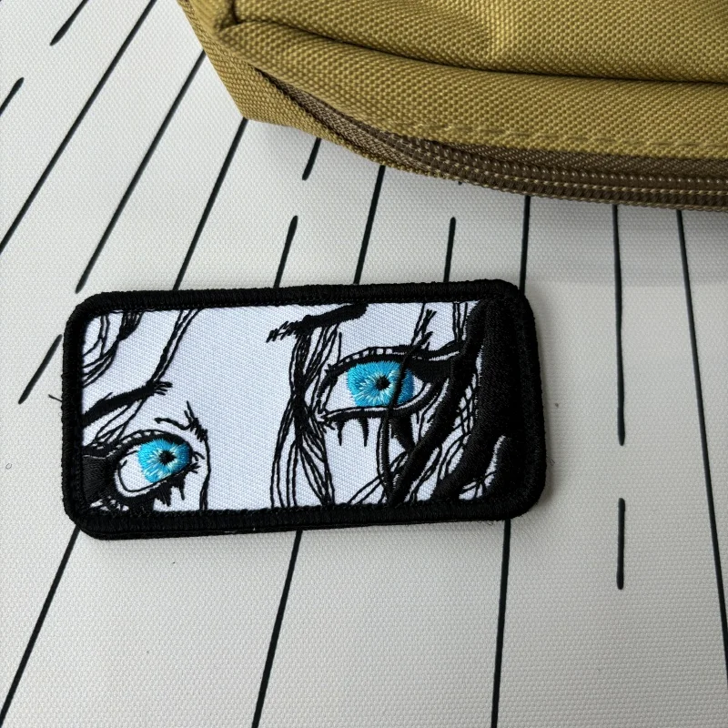 Parches tácticos de moral de chica de ojos azules triste, parche bordado de gancho y bucle, insignia militar de Ojos de belleza, brazalete, pegatinas de mochila