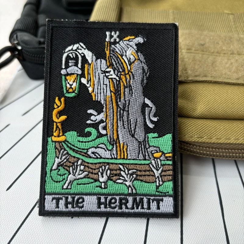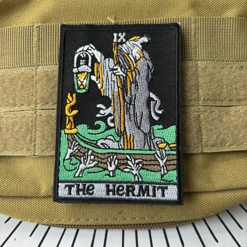 Parches tácticos de la moral del ermitaño, pegatinas de mochila con bordado de gancho y bucle, insignia militar, brazalete