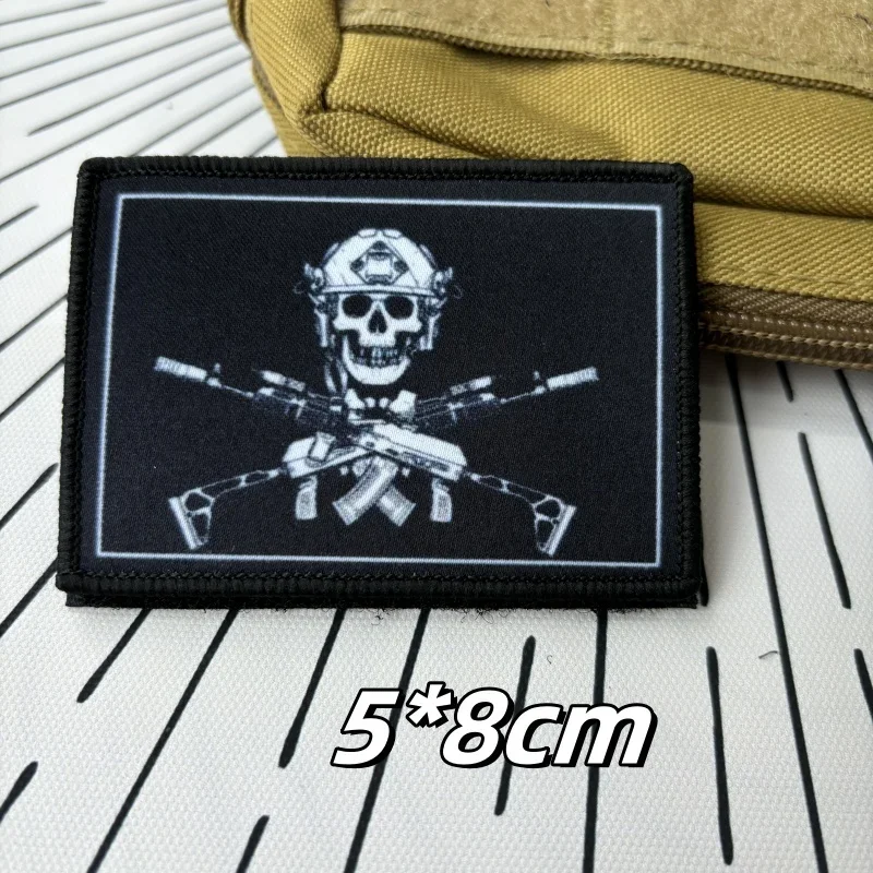 Parches tácticos de moral de esqueleto "Russian Roger", cazador de cabeza, parche de gancho y bucle impreso de PU, insignia de Chevron militar, pegatinas para mochila