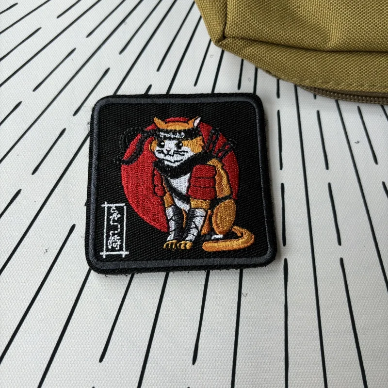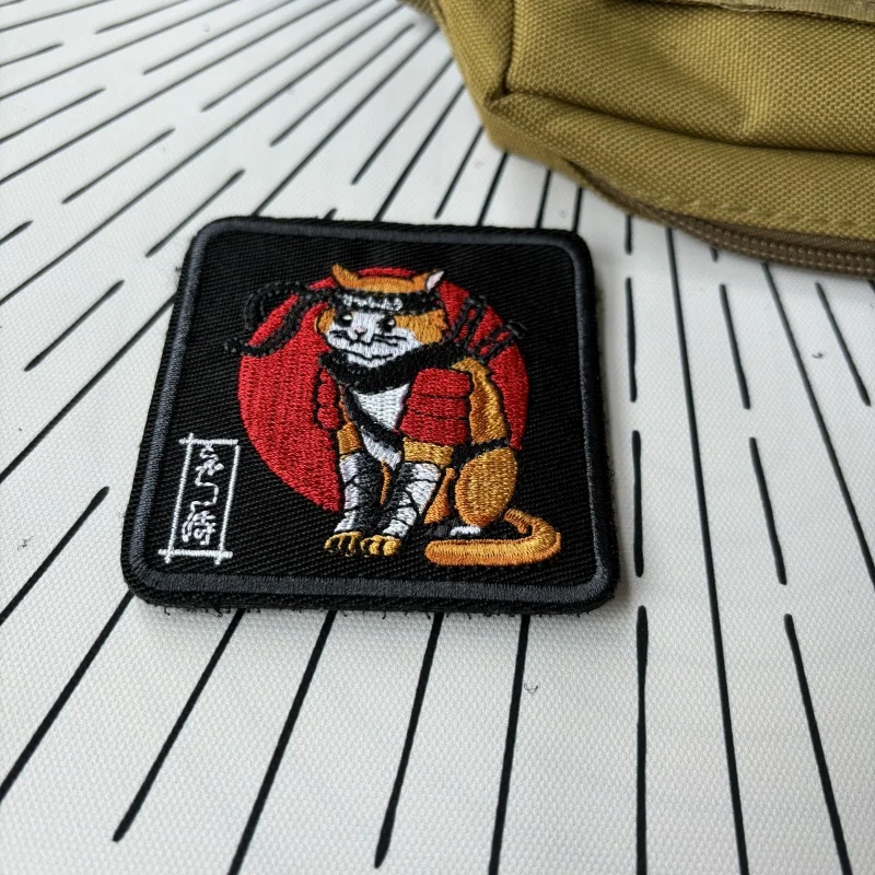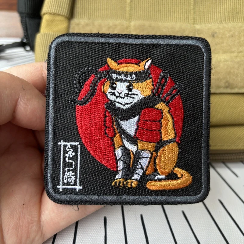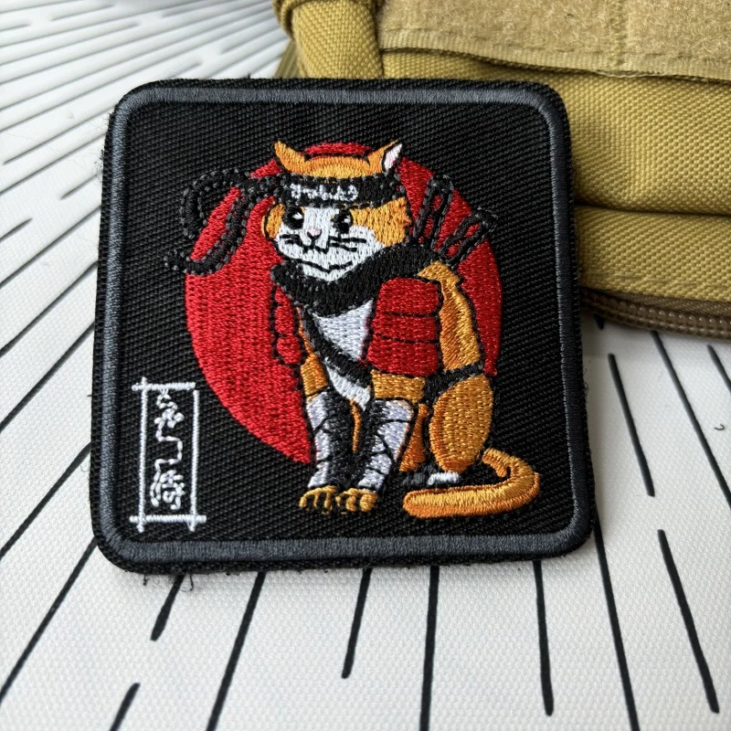 Parches tácticos de moral de gato samurái de Anime japonés, parche de gancho y bucle bordado de dibujos animados, insignia militar, brazalete, pegatinas para mochila