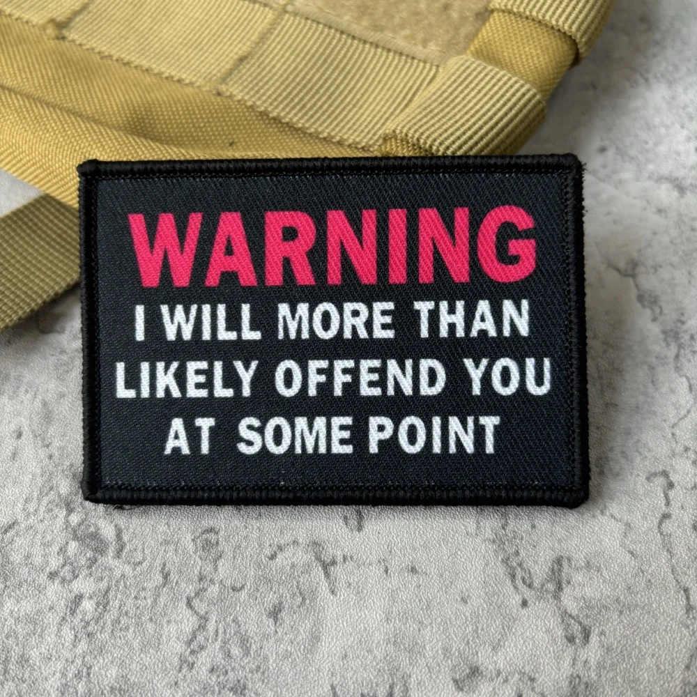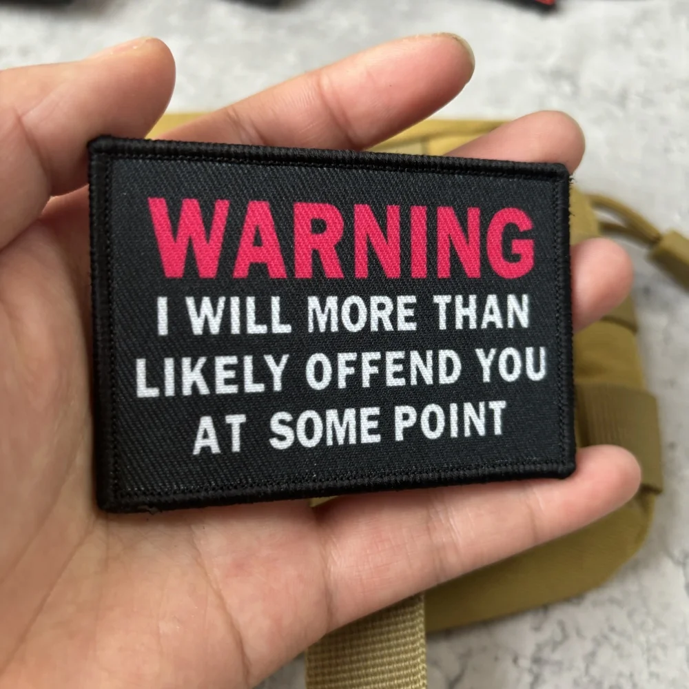 Parches tácticos de moral impresos de advertencia, parche divertido de gancho y bucle, insignia militar, brazalete, ropa, pegatinas para mochila