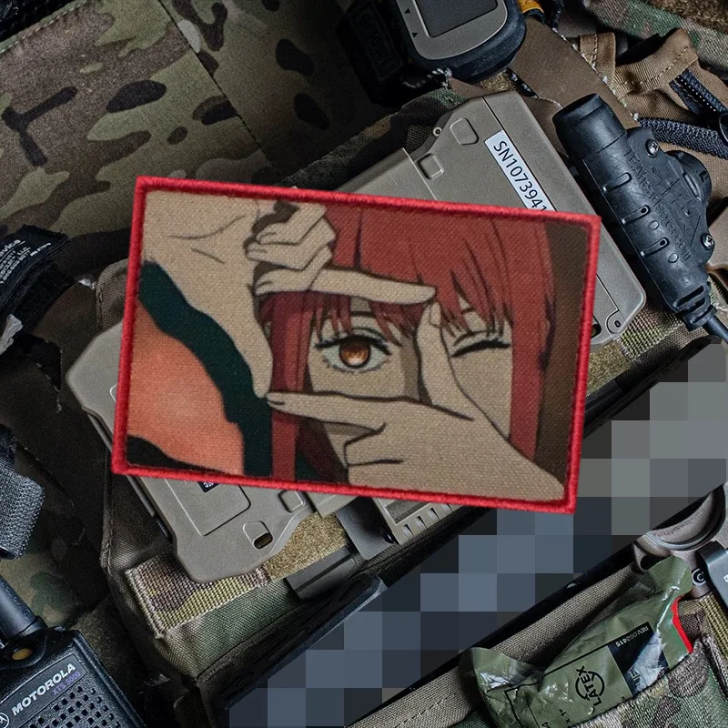 Motosierra Mania chica ojos parches tácticos animales impreso gancho y bucle parche militar brazalete combate apliques mochila pegatinaNotas: