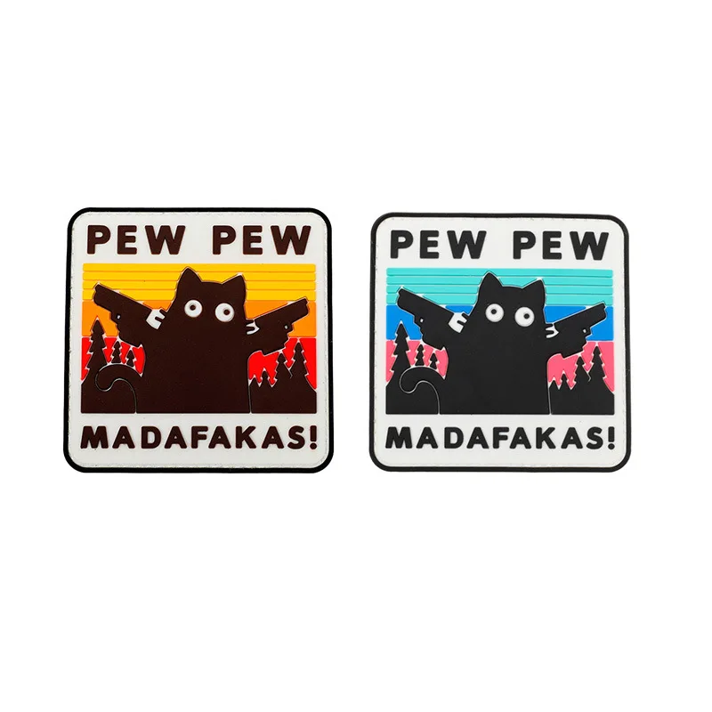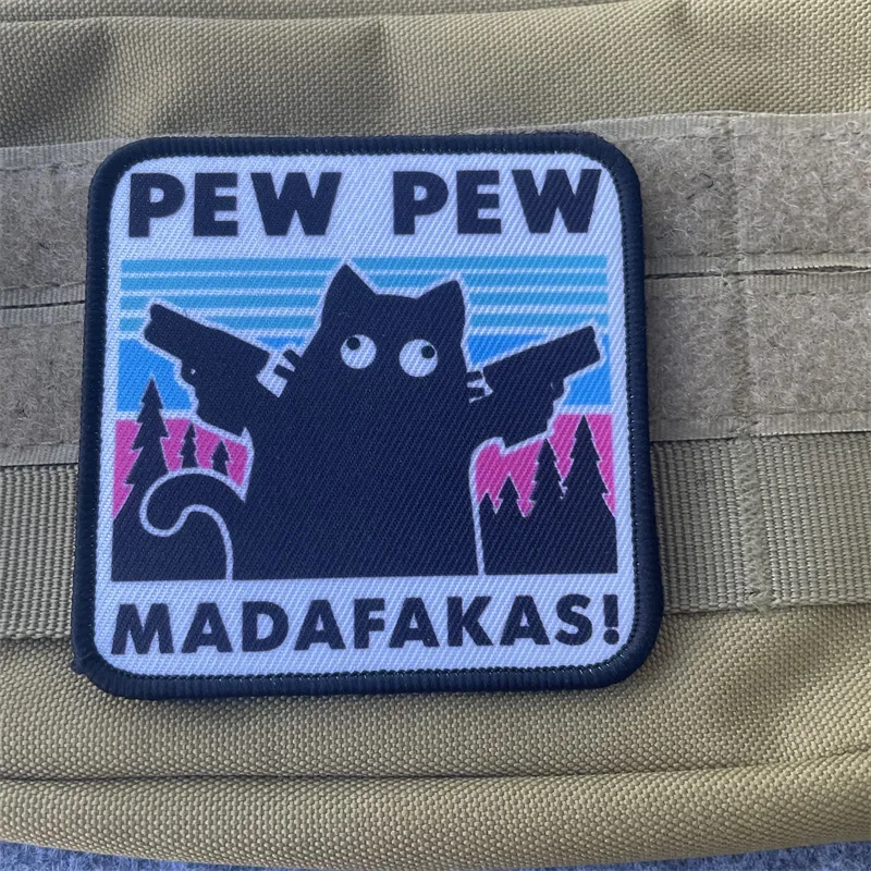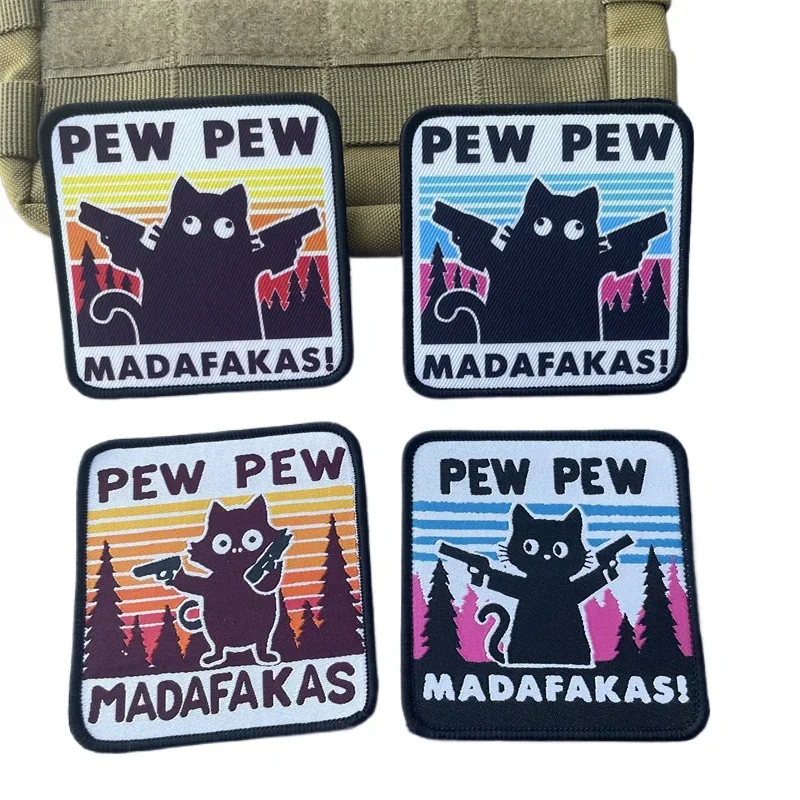 Parches tácticos Pew Madafakas, bordado de gancho y bucle, doble lanza militar, insignia de moral de gato negro, pegatinas de mochila