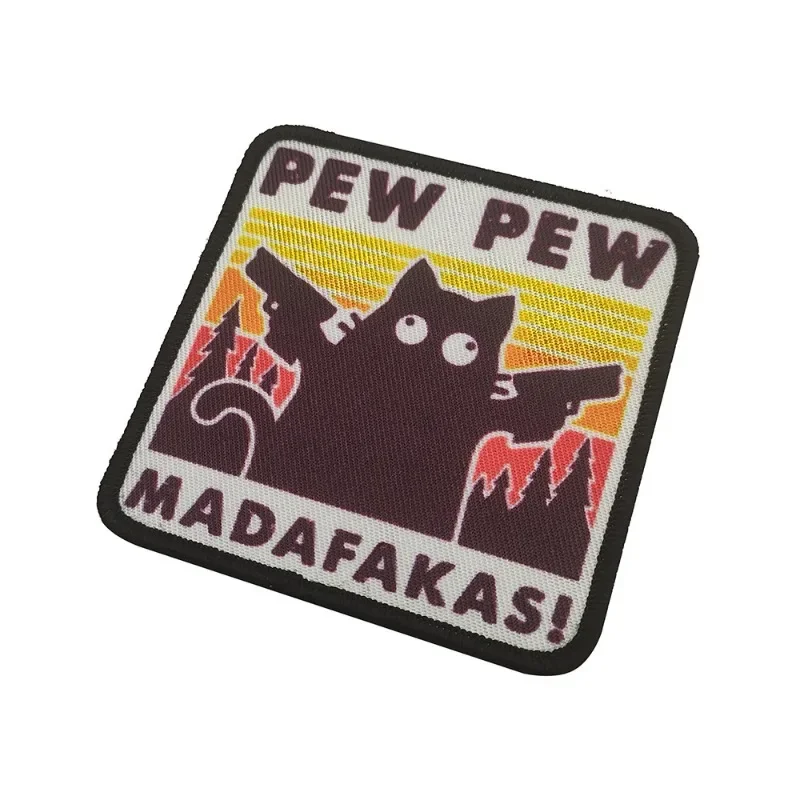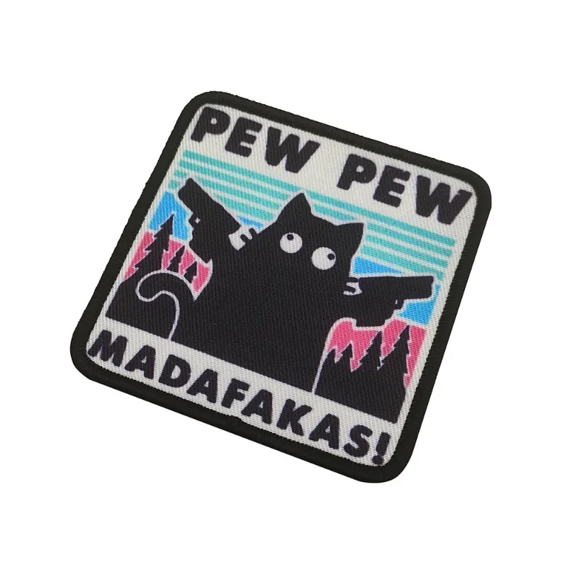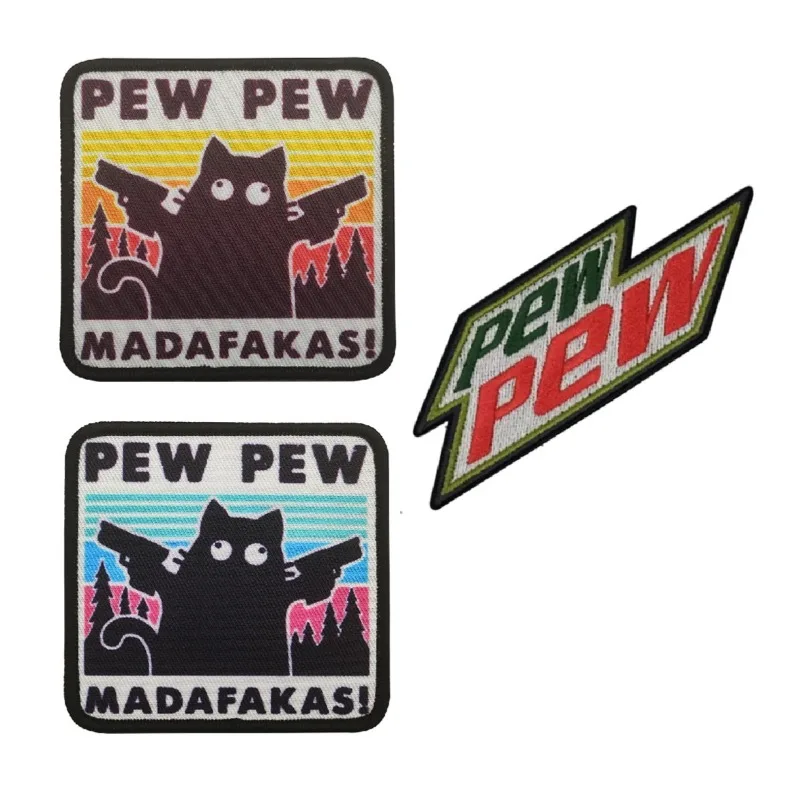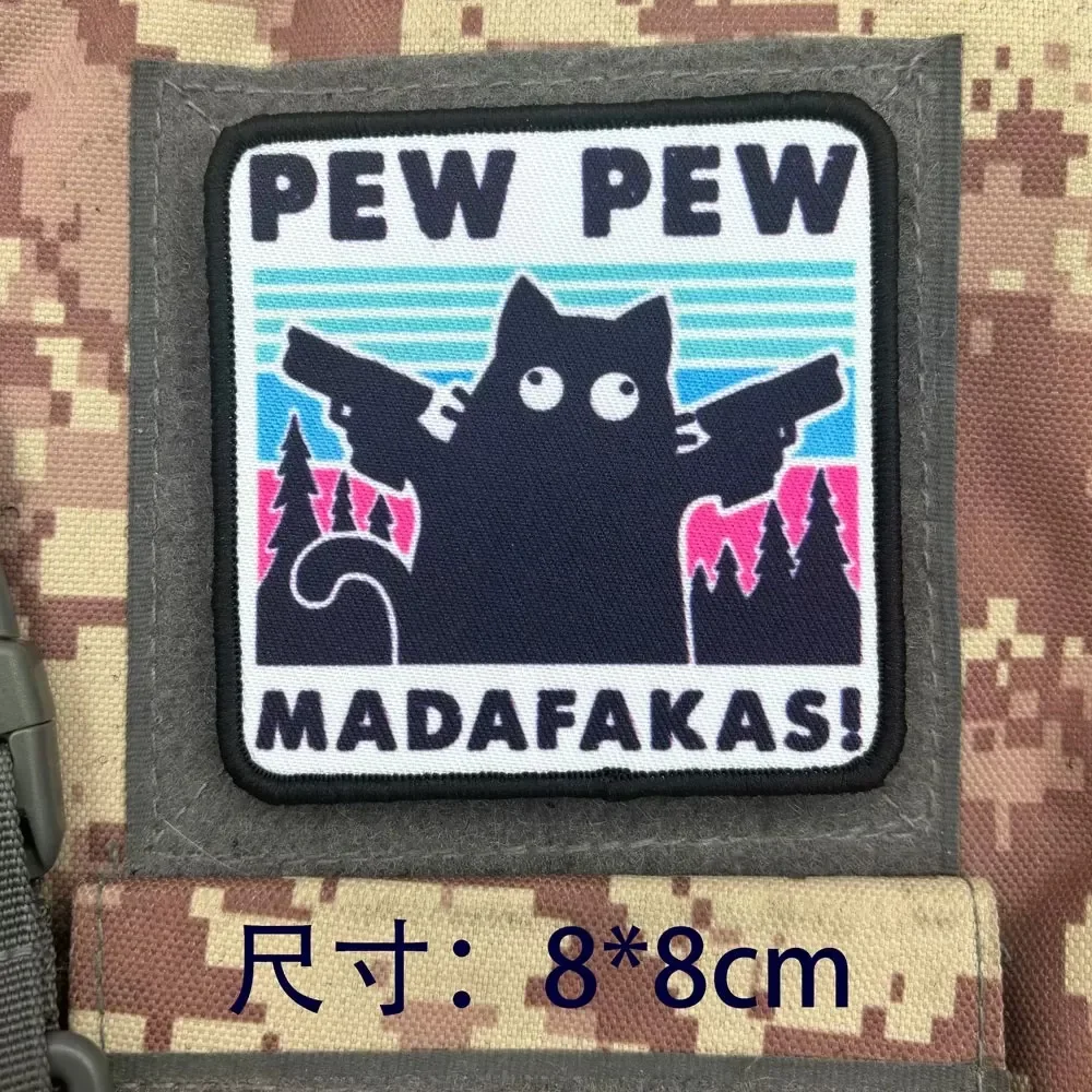 Parches tácticos Pew Madafakas, bordados divertidos, gancho y bucle, doble lanza militar, insignia de moral de gato negro, pegatinas de mochila