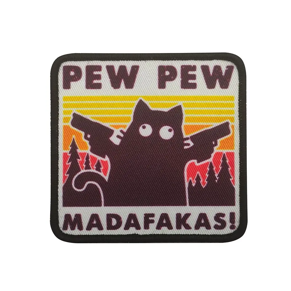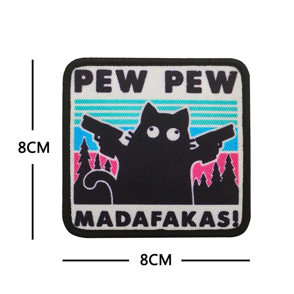 Parches tácticos Pew Madafakas, parche bordado divertido con gancho y bucle, doble lanza militar, insignia de moral de gato negro, pegatinas para mochila