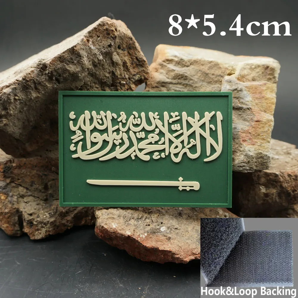 Parches tácticos de PVC de Arabia Saudita con respaldo de gancho y bucle para mochilas, ropa, accesorios militares