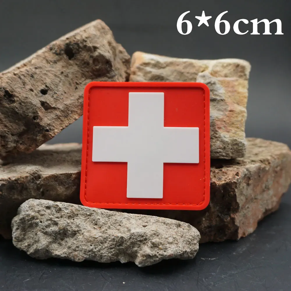 Parches tácticos de PVC de la Cruz Roja Suiza con respaldo de gancho y bucle para mochilas, ropa, accesorios militares