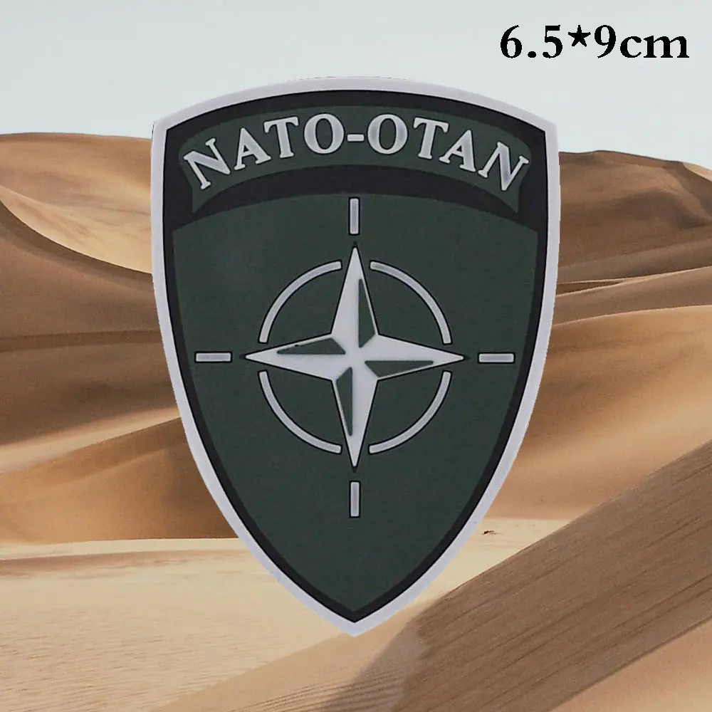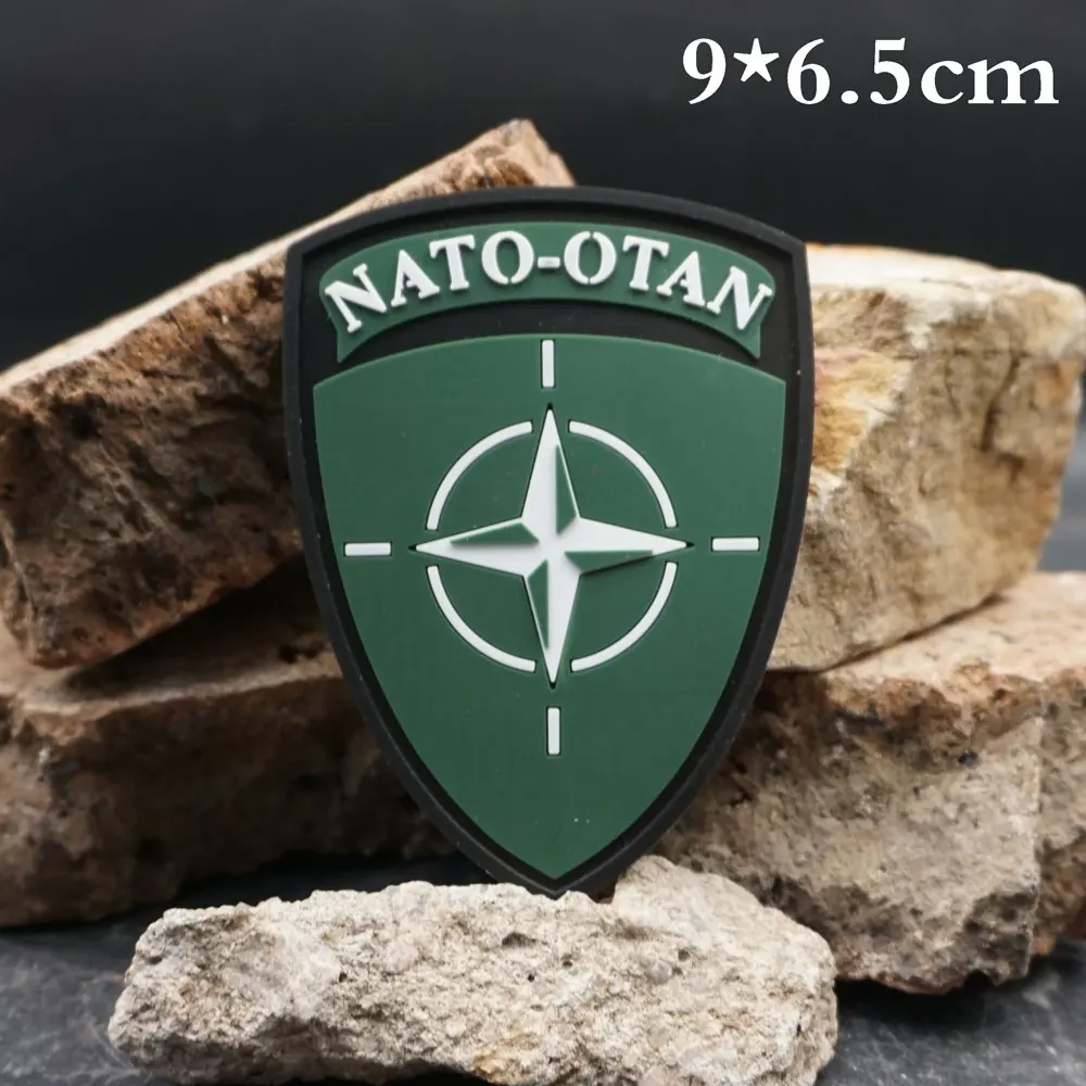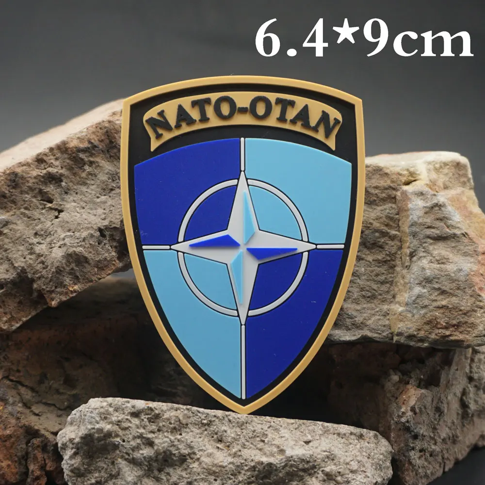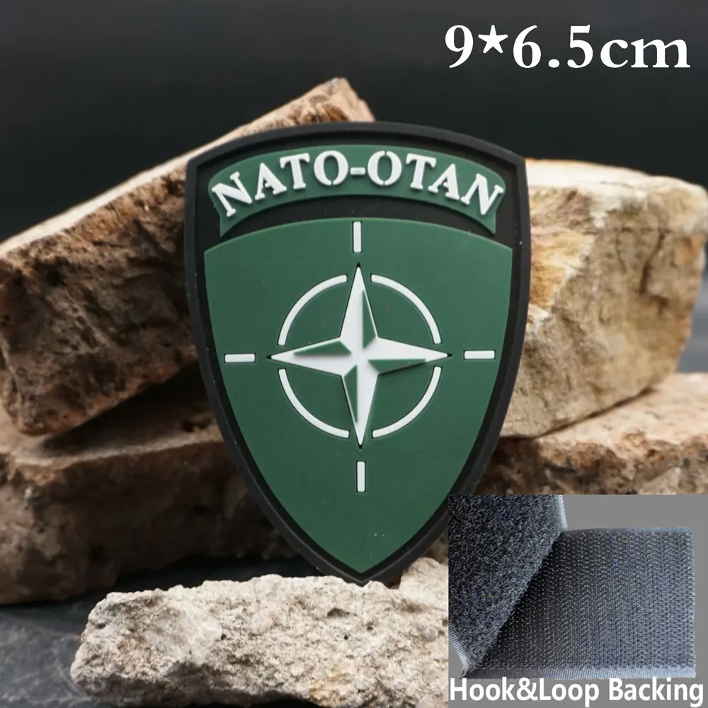 Parches tácticos de PVC NATO-OTAN, accesorios militares con gancho y lazo, para mochilas, ropa