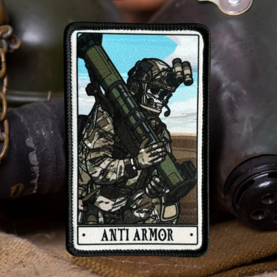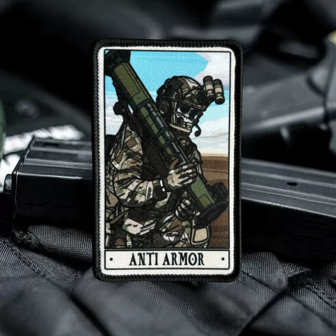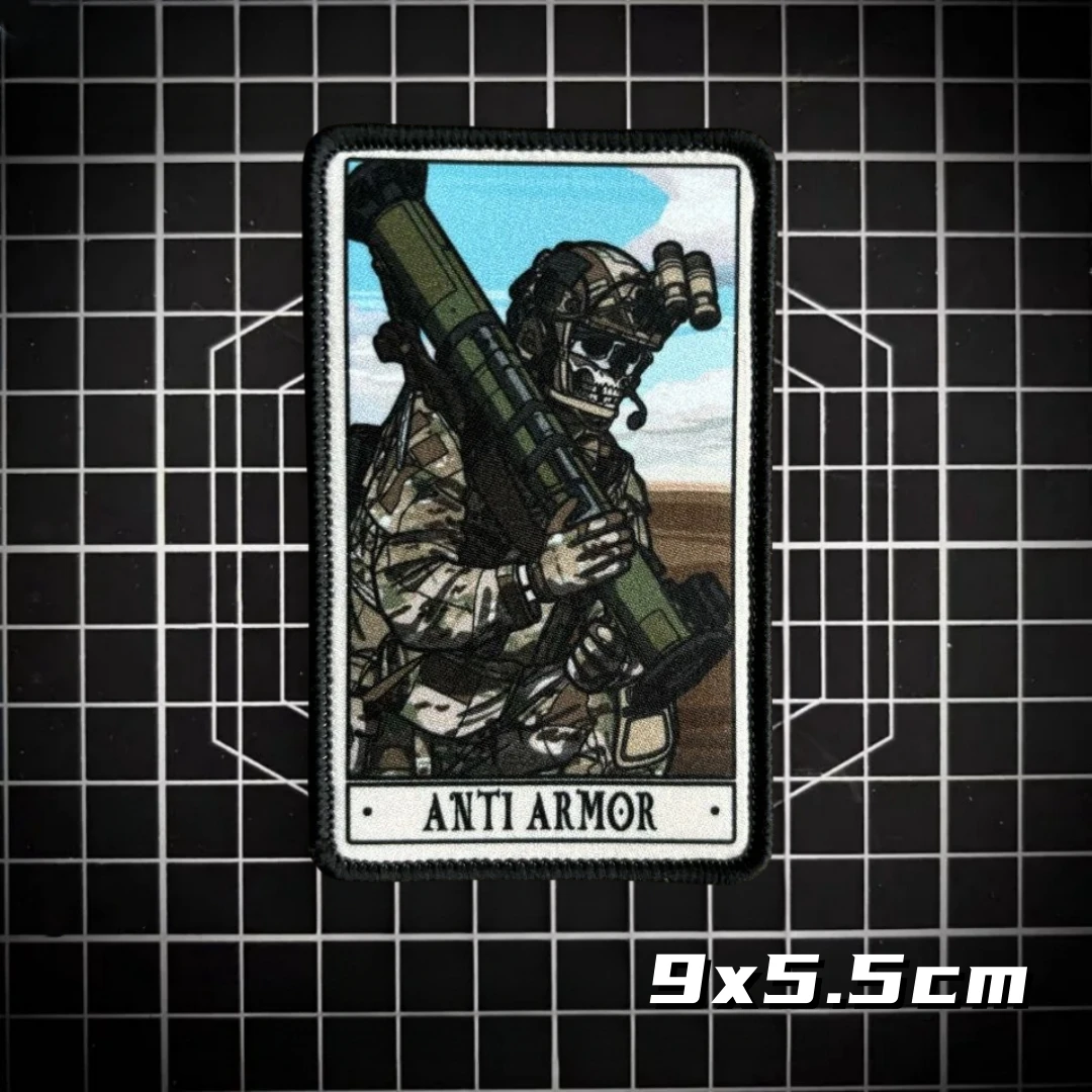 Parches tácticos de Tarot del campo de batalla del ejército, insignia de moral de soldado de calavera, impresión de gancho y bucle, pistola de cohete, pegatina para mochila militar