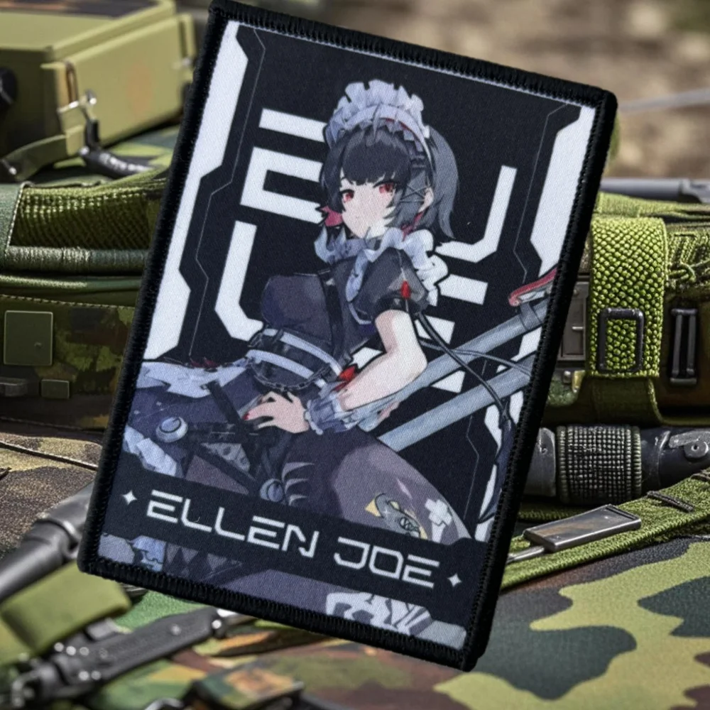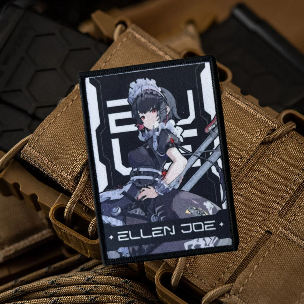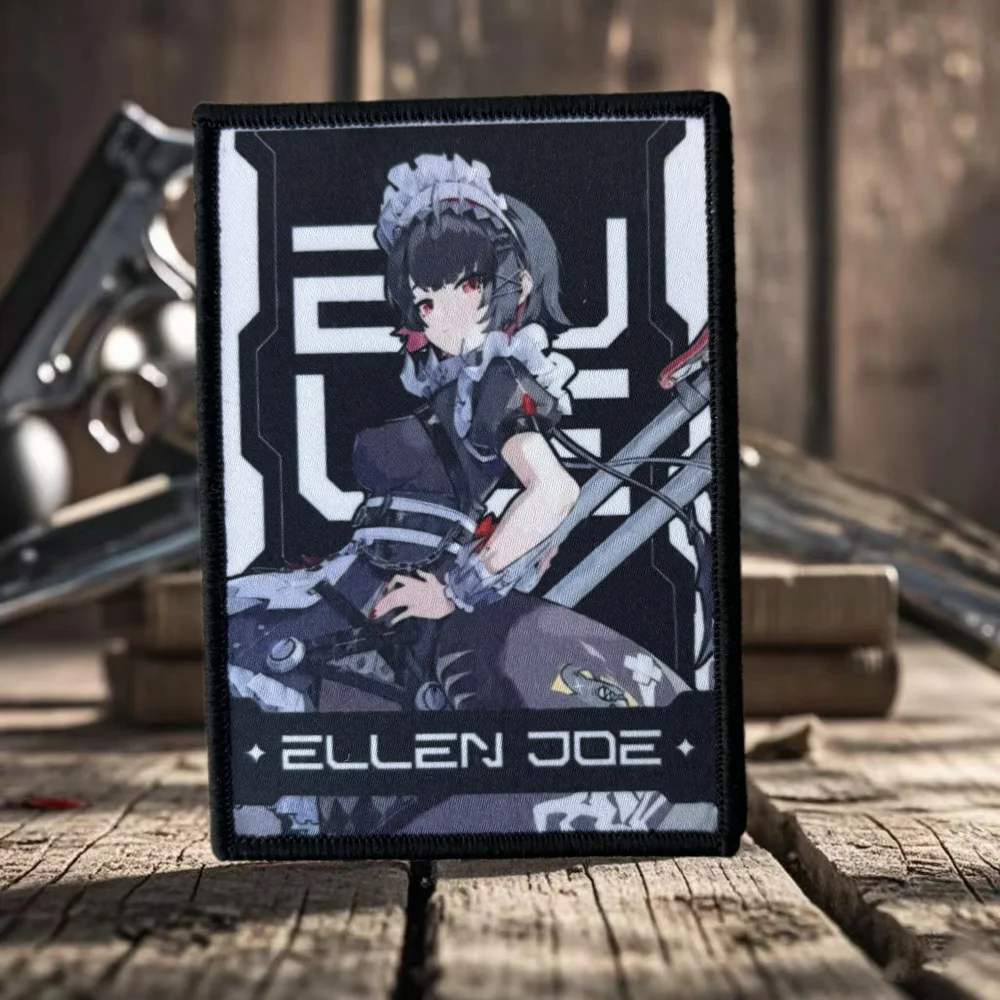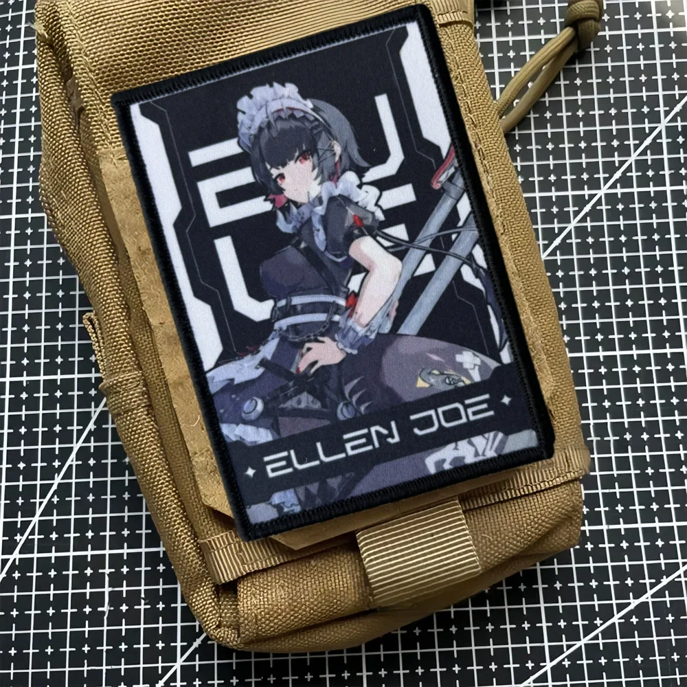 Parches tácticos Zenless Zone Zero Morale, parche de gancho y bucle impreso Ellen Joe, insignia del ejército militar, pegatinas para mochila