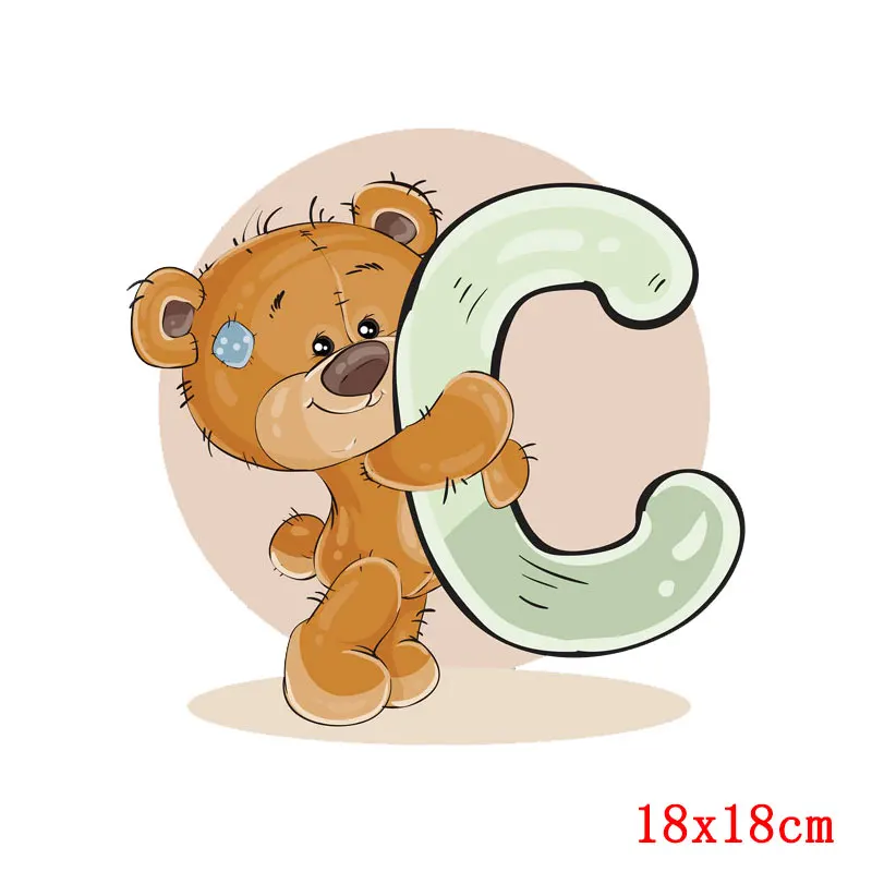 Parche Térmico de Dibujos Animados con Letras de Oso para Ropa, Pegatina para Camiseta, Transferencia de Hierro