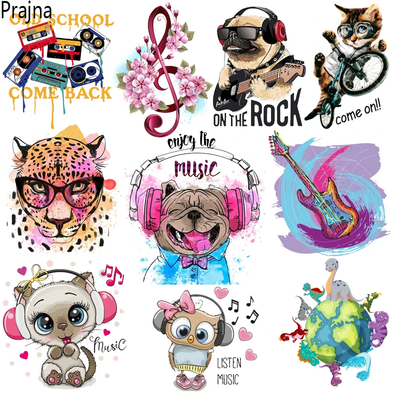 Parches térmicos de transferencia de calor para guitarra de música/auriculares para ropa, pegatinas de transferencia térmica DIY, parche para planchar, aplique de planchado