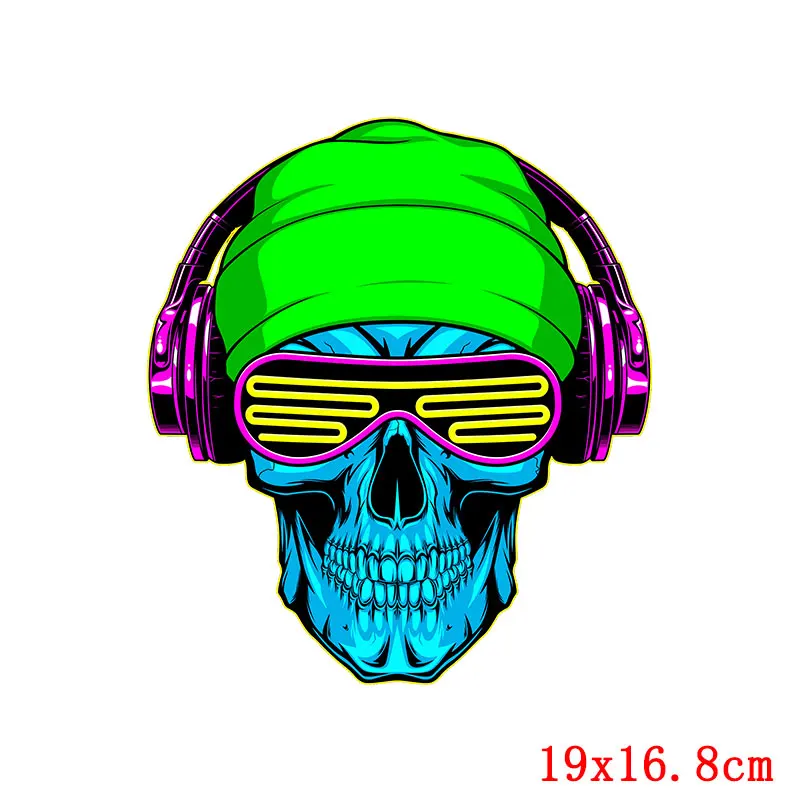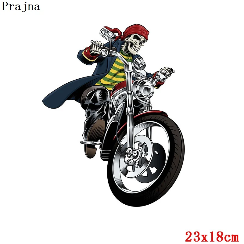 Parches Térmicos de Transferencia Térmica de Calor para Motocicleta, Calavera Punk, Pegatinas DIY para Ropa, Apliques de Planchado
