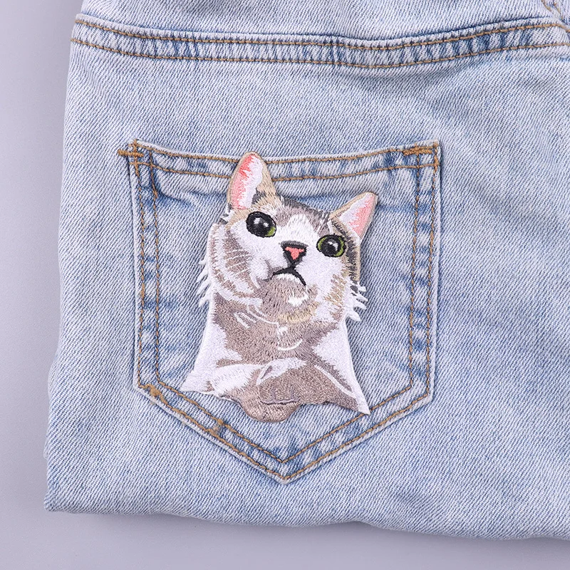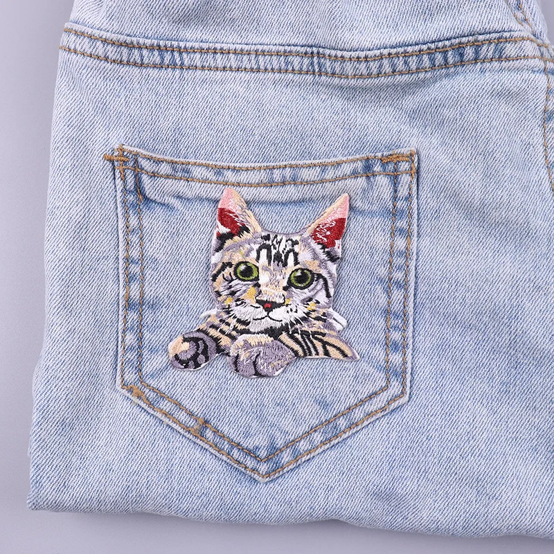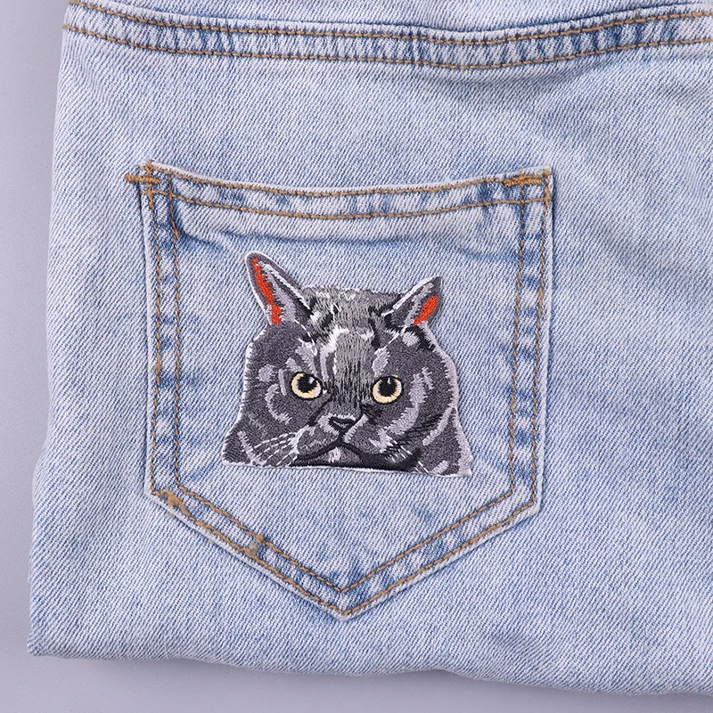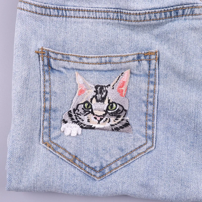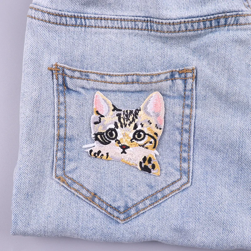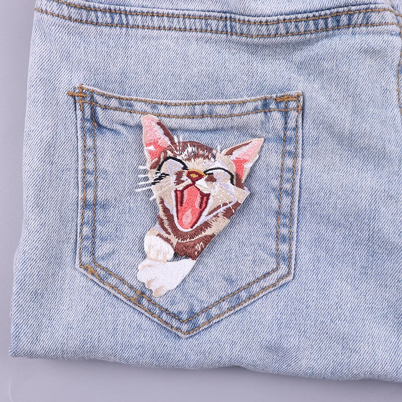 Parches termoadhesivos de bolsillo para ropa, decoración de gato de dibujos animados, bordado, bricolaje