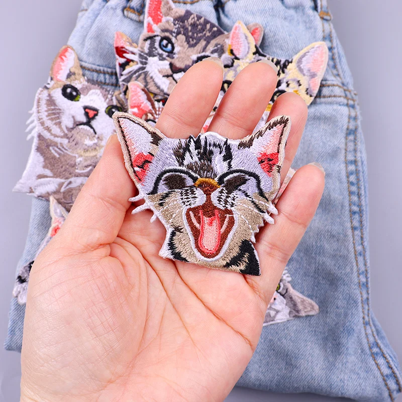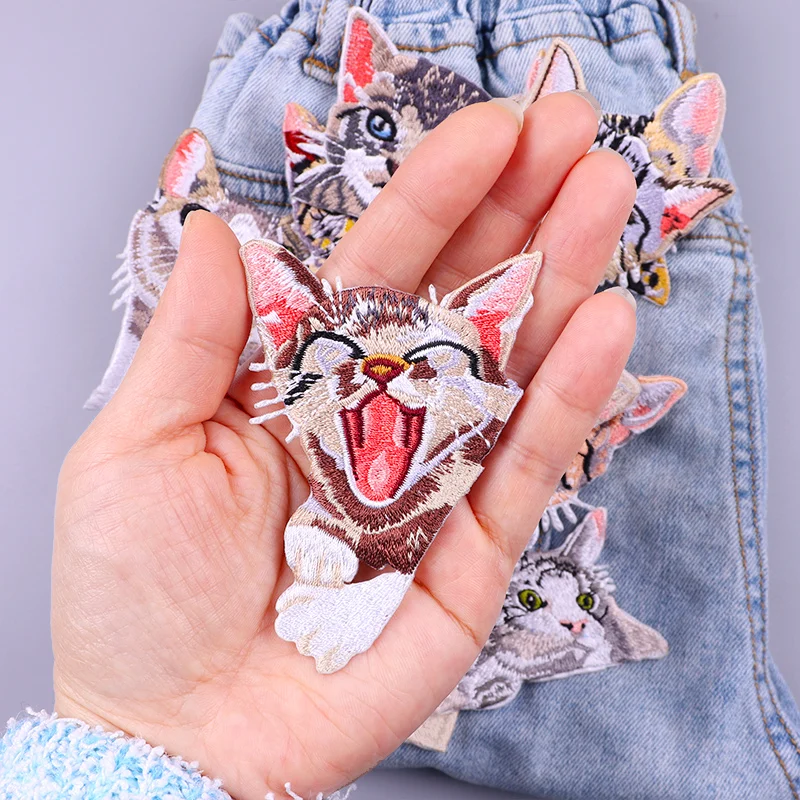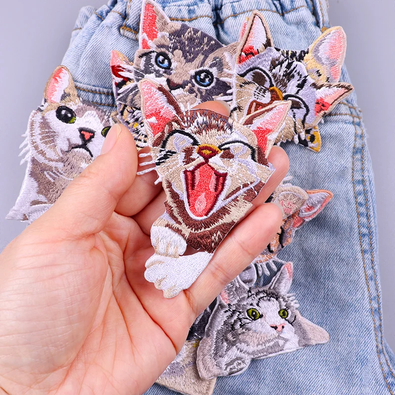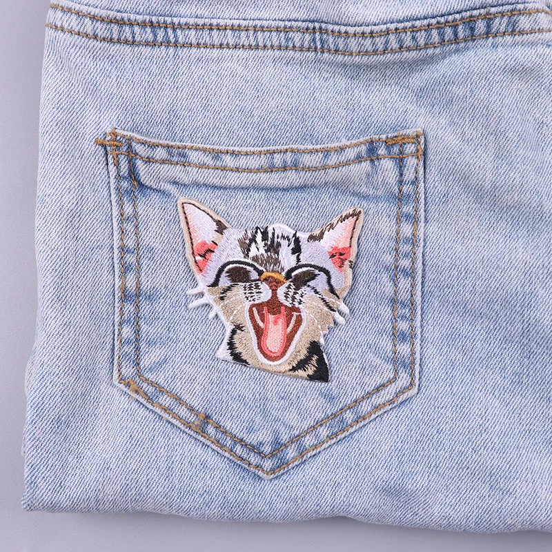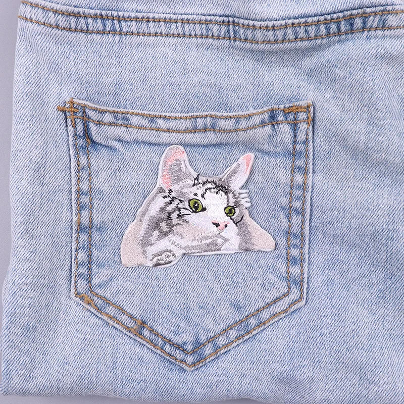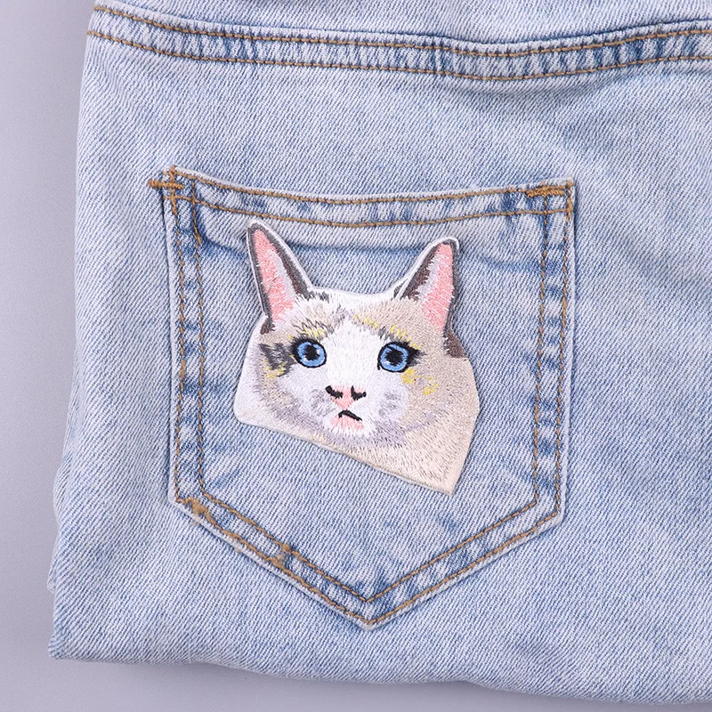 Parches termoadhesivos de bolsillo para ropa, decoración de gato de dibujos animados, bordado, bricolaje