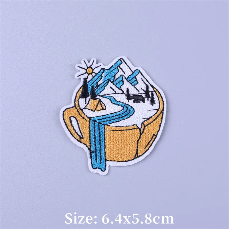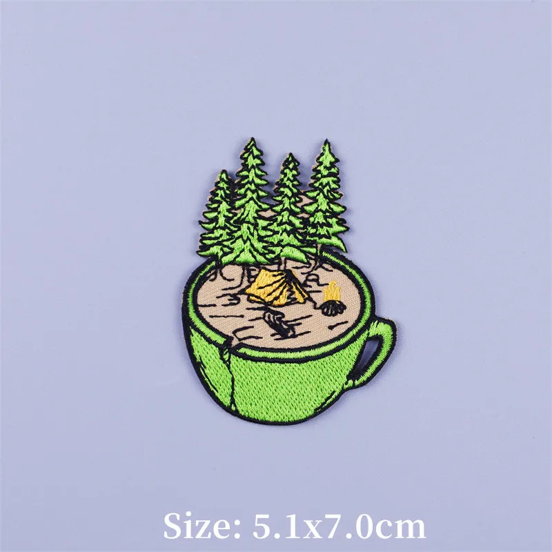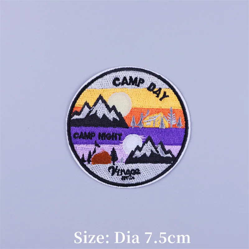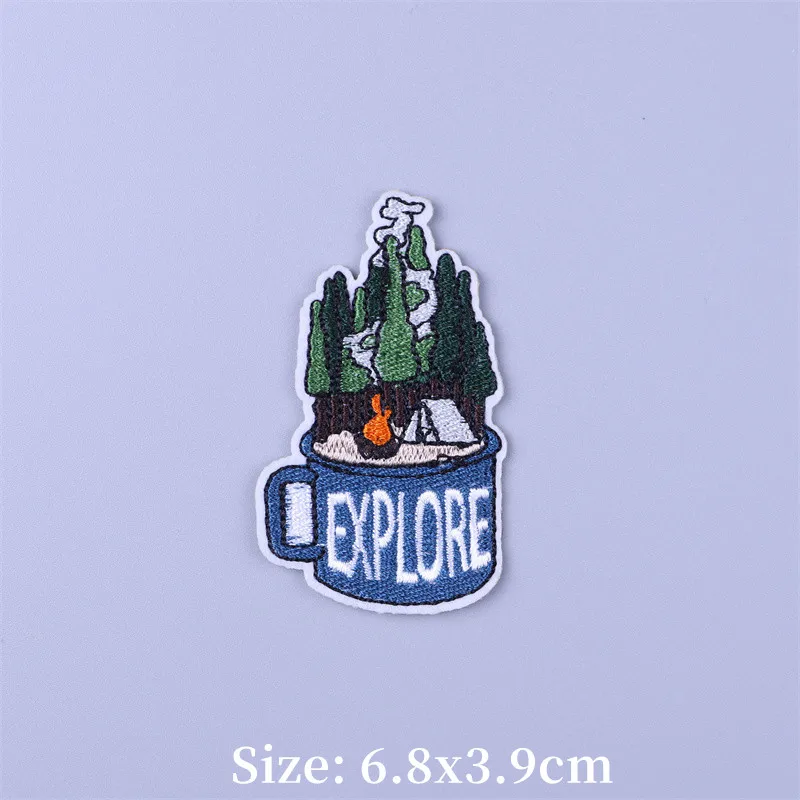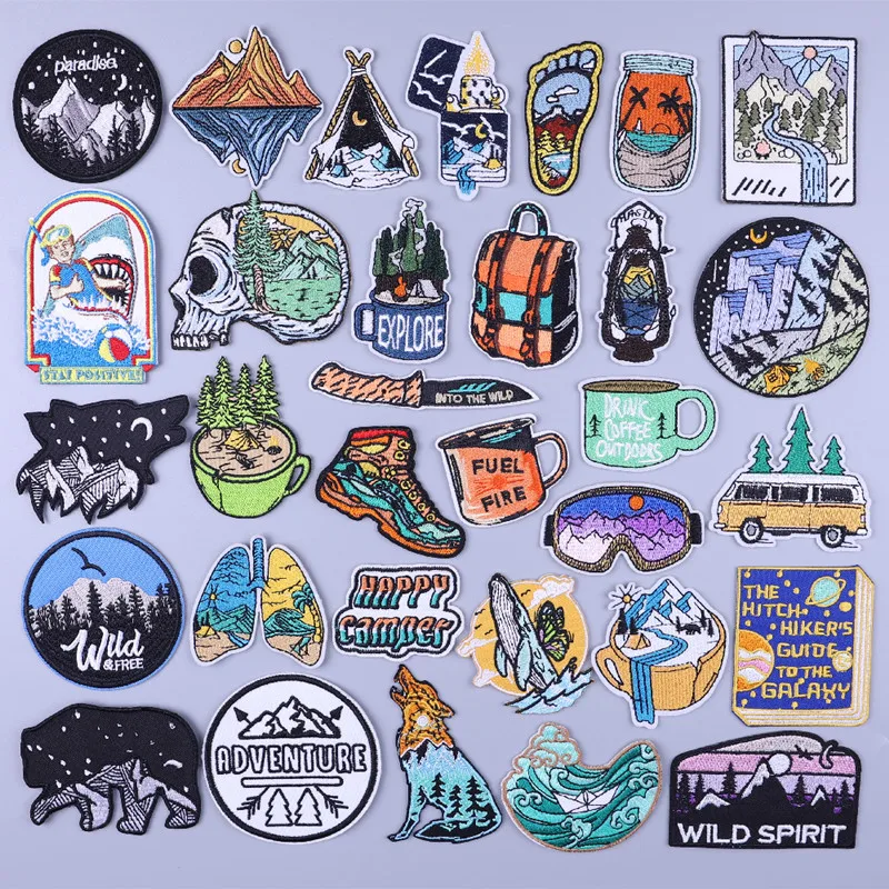 Montañismo explorar parches bordados termoadhesivos para aventuras al aire libre paisaje natural parche de tela fundible para planchar